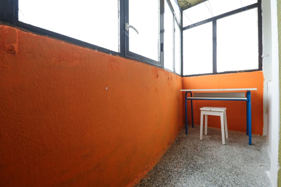 Stan je svjetao - orijentiran je na zapadnu stranu. Površine je 45,24 m2, a sastoji se od ulaznog hodnika s velikim ugradbenim ormarom, kupaonice, dvije spavaće sobe, odvojene kuhinje s blagovaonskim dijelom te zatvorene lođe s lijepim pogledom.