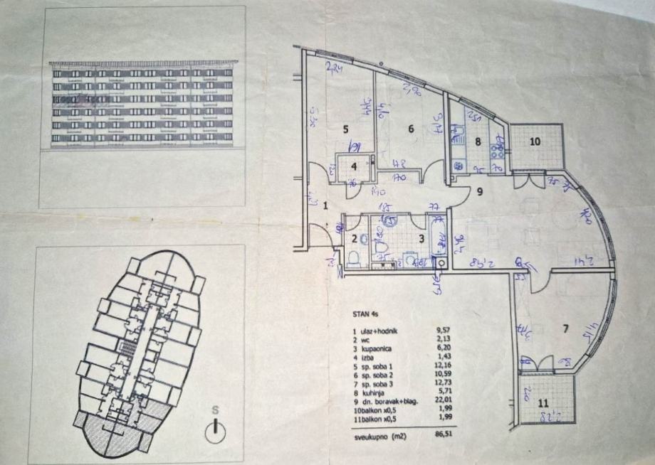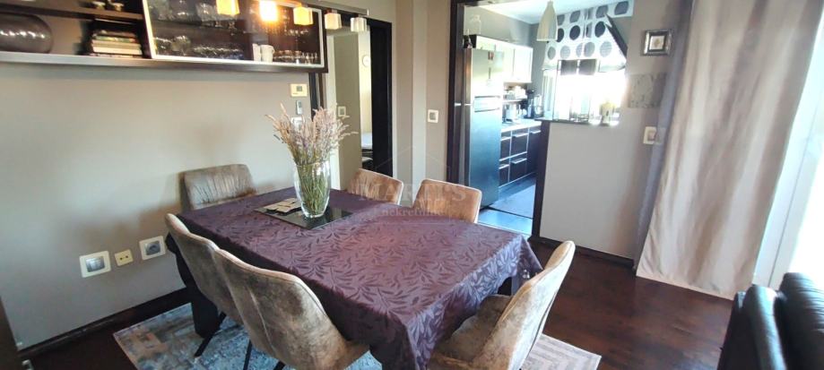 STAN: ulazni garderobni hodnik, dnevni boravak, blagovaonica i kuhinja kao jedinstveni prostor, 3 spavaće sobe, kupaonica s toaletom i tuš kabinom te podnim grijanjem, zaseban toalet, ostava i 2 lođe.