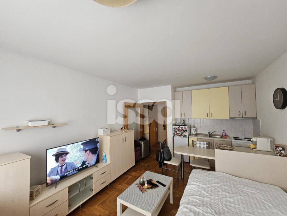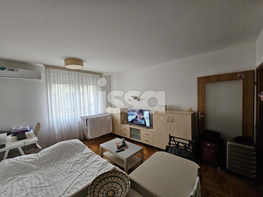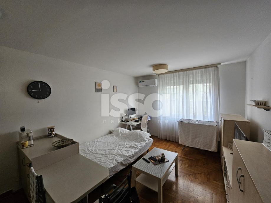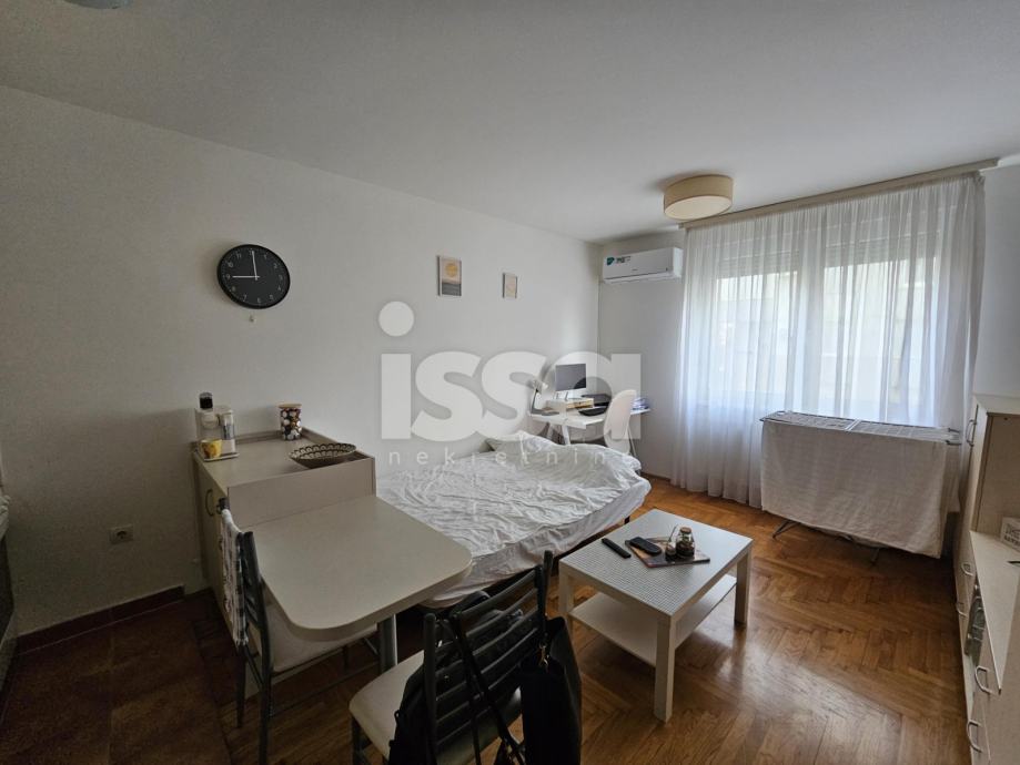 Iznajmljuje se garsonjera u prizemlju novije zgrade u naselju Špansko. Stan se sastoji od ulaznog hodnika sa velikim i dubokim ugradbenim oramarima, kupaonice sa tuš kabinom i velike dnevne sobe sa kuhinjom i blagovaonicom.