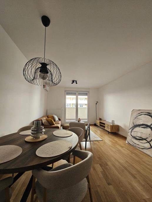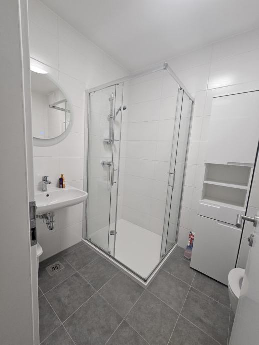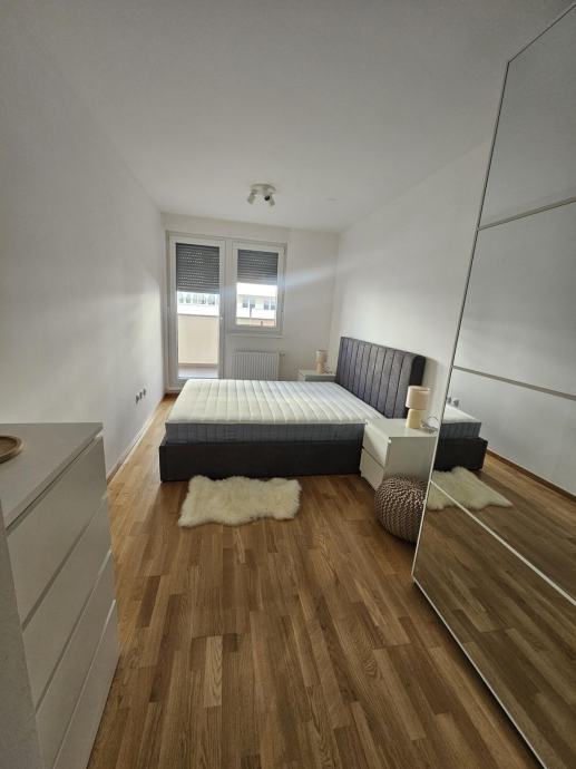 Iznajmljuje se prekrasan svijetao stan ( južno orijentiran) u novogradnji sveukupne površine 63m2, prvi najam, potpuno opremljen, Stan se sastoji od hodnika, kupaone s wc-om, prostranog dnevnog boravka sa kuhinjom iz kojeg se izlazi na terasu, te spavače sobe iz koje je također izlaz na terasu, stanu pripada i označeno parkirno mjesto u garaži, pod rampom, te spremište veličine otprilike 4,5 m2, čiji je ulaz direktno preko puta ulaza u stan. Stan je opremljen svim potrebnim aparatima, te je spreman za useljenje, režije su po potrošnji, grijanje na toplanu, struja i voda ( pričuvu plača najmodavac). UVJETI NAJMA: depozit u visini jedne mjesečne najamnine, te solemnizacija ugovora kod javnog bilježnika