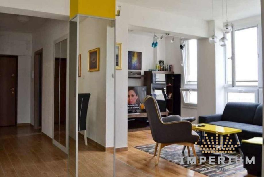 Sastoji se od dnevnog boravka, kuhinje, blagovaone, 2 spavaće sobe, kupaone i lođe.