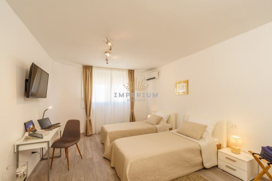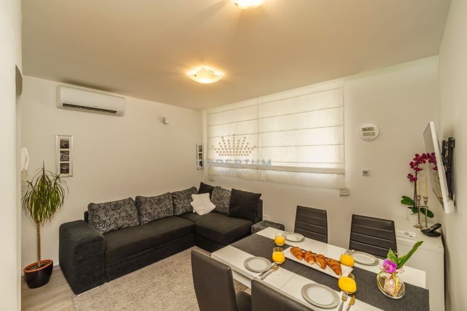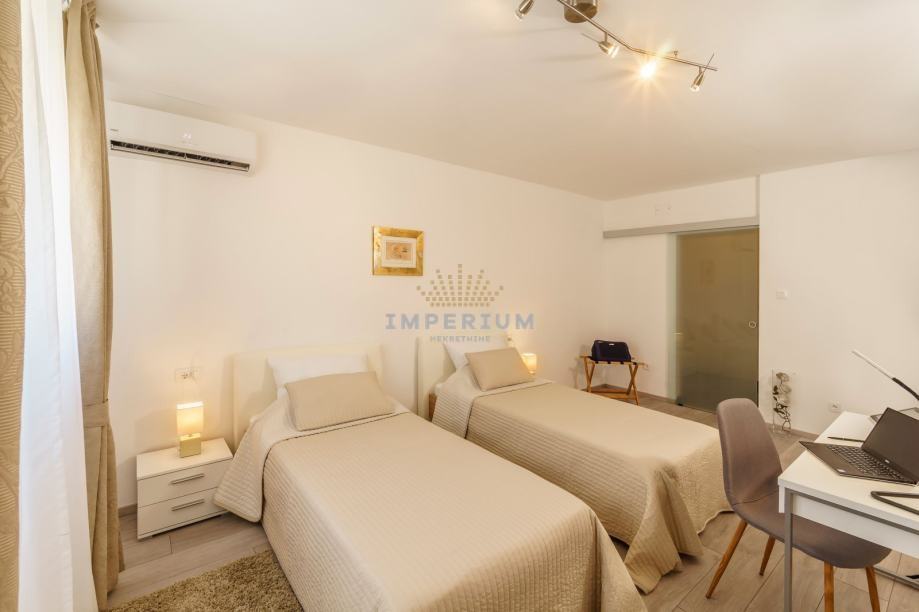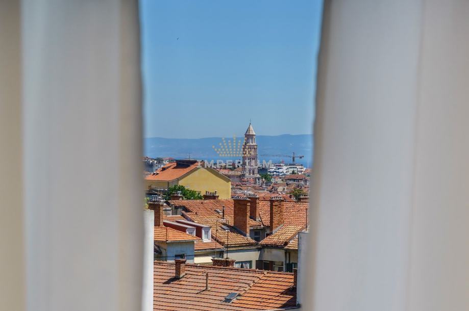 Smješten je na šestom katu stambene zgrade te ima pogled na staru gradsku jezgru i na kaštelanski zaljev.