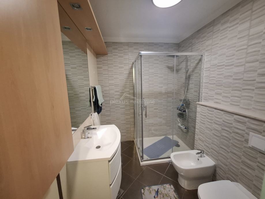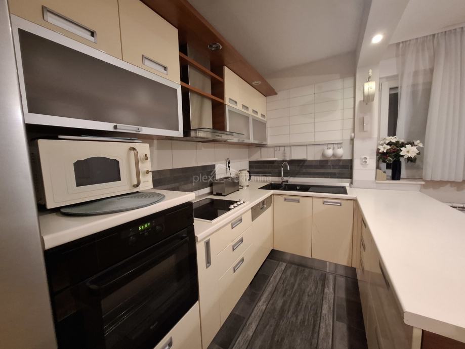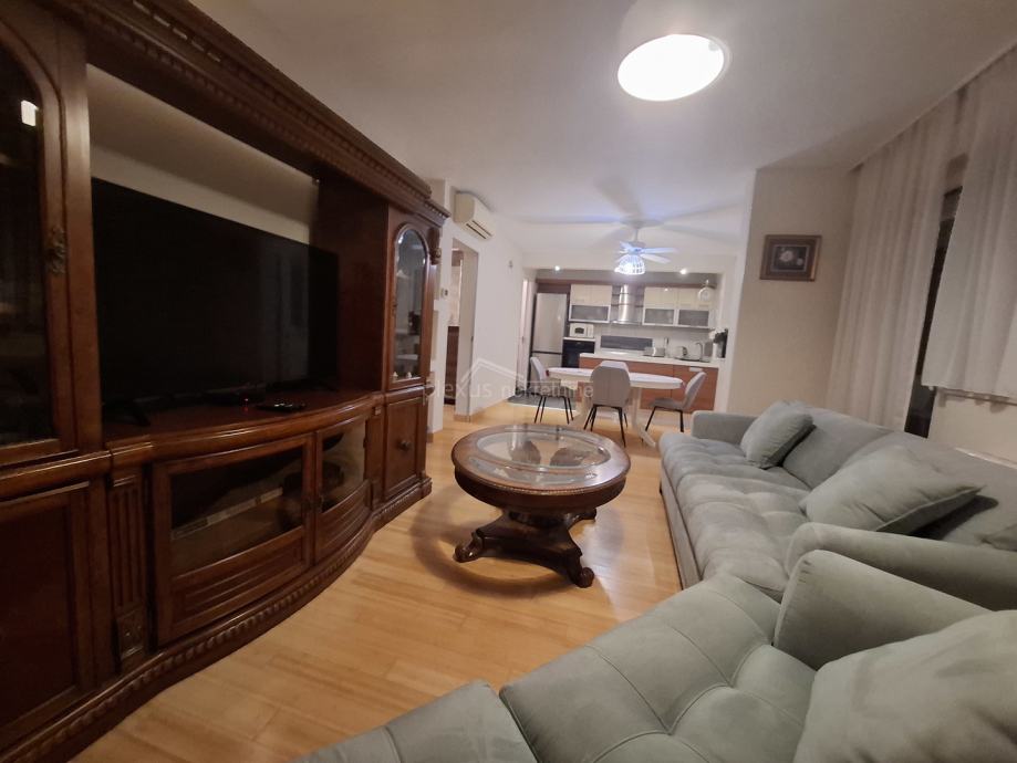 Stan je funkcionalno namješten i opremljen svim potrebnim uređajima, spreman za useljenje. Sastoji se od tri prostrane spavaće sobe, kuhinje s blagovaonicom te ugodnog dnevnog dijela. Poseban naglasak stavljamo na lođu s koje se pruža otvoren pogled na more, idealnu za ispijanje jutarnje kave ili večernje opuštanje. Zahvaljujući orijentaciji, prostor je pun svjetla i zraka.