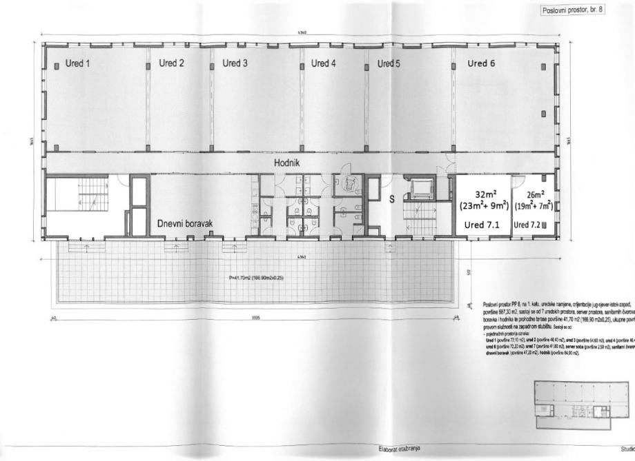i ženski odvojeno, sa ukupno 8 kabina) (44,60m2), terasa (166,80 m2),
