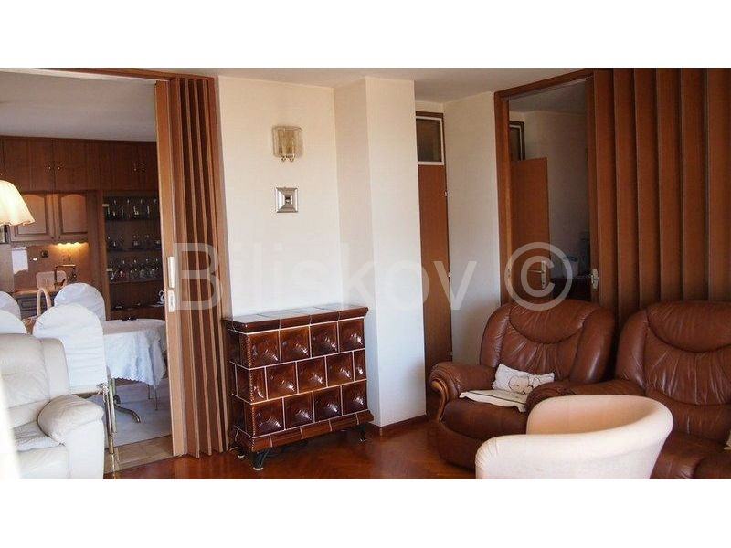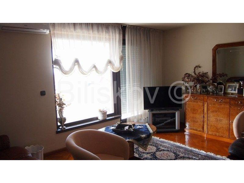 SPLIT, BAČVICE, četverosoban stan površine 130m2 na 4. katu stambene zgrade. Sastoji se od 4 spavaće sobe, kuhinje, blagovaonice, dnevnog boravka, 2 kupaonice, i 3 terase, odnosno balkona. Iz svake prostorije se izlazi na balkon osim jedne sobe. Spavaći dio (3 sobe sa jednom kupaonicom je na poluetaži poviše dnevnog dijela, odnosno kuhinje i jedne sobe).