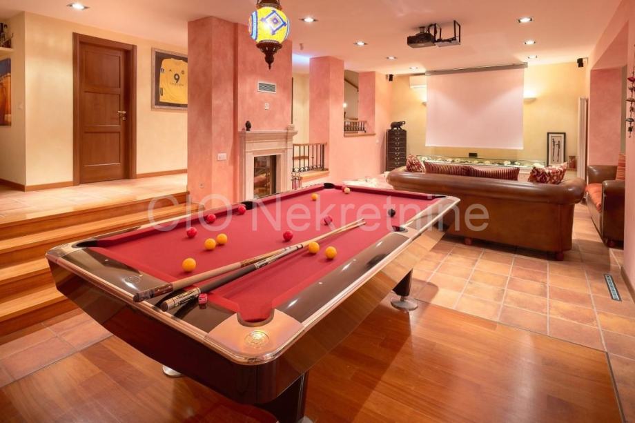 Posredujemo u prodaji lijepe moderne vile u Splitu, predio Bačvice. Vila se nalazi u mirnom okružju, na vrlo atraktivnoj lokaciji, 150m od mora.Ima ukupno četiri etaže, 400 m2 bruto površine (350 m2 neto površine). Godine 2010. vila je kompletno rekonstruirana i renovirana.Suteren čine prostorija za proslave, mala kuhinja, radna soba i kupaonica. U prizemlju se nalaze prostrani dnevni boravak, kuhinja, blagovaonica, ostava i toalet. Dva su izlaza na terase kojima je prizemlje kuće povezano s lijepo organiziranom i održavanom okućnicom koja uključuje bazen, jacuzzi i prostor za sunčanje s južne strane, te ljetnu blagovaonicu koja je smještana na terasi s istočne strane. Na prvom katu nalaze se tri spavaće sobe s pripadajućim kupaonicima i izlazima na terase te praonica rublja. Drugi kat kuće zauzima glavna spavaća soba koja uključuje i odvojeni radni prostor, kupaonicu sa saunom, veliku garderobu, te prostranu terasu s koje se pruža prekrasni pogled na more. Sve etaže su povezane lijepim drvenim stubištemVili pripada garaža od 30 m2, iznad koje se nalazi terasa.Zbog svoje izuzetne lokacije, blizine plaže i samog centra grada ova je nekretnina izvrsna investicija za bavljenje turizmom. Vlasištvo je uredno.Više informacija kao i razgledavanje nekretnine s agentom moguće je isključivo uz potpisani Ugovor o posredovanju koji je u skladu sa Zakonom o zaštiti podataka i Zakonom o posredovanju u prometu nekretnina.Agencijska provizija: 3% + pdv