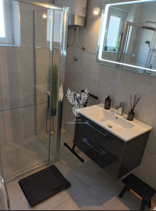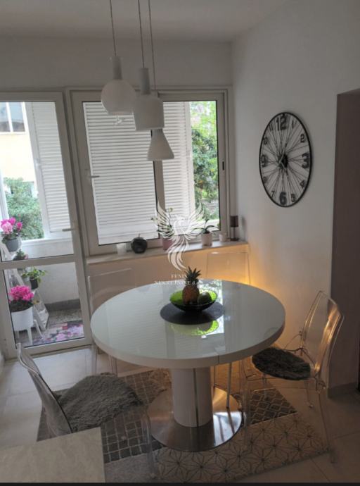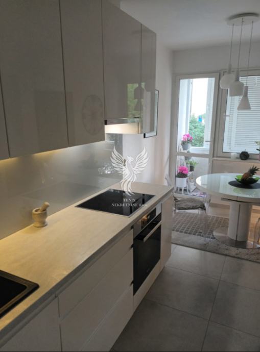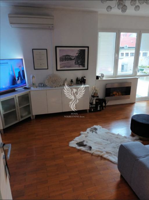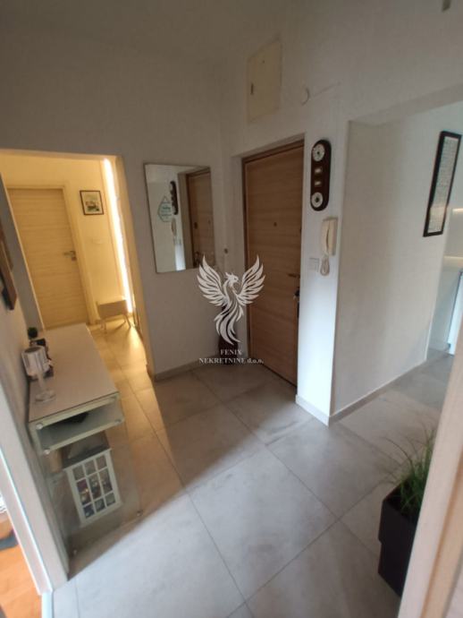 Stan se sastoji od ulaznog prostora, dviju soba, predsoblja, kupaonice, kuhinje s blagovaonicom, prostranog dnevnog boravka, te dviju lođa. Zbog svoje orijentacije na tri strane svijeta, stan obiluje prirodnom svjetlošću. Stan je moderno uređen, te se prodaje s namještajem. Papiri vlasništva su uredni.