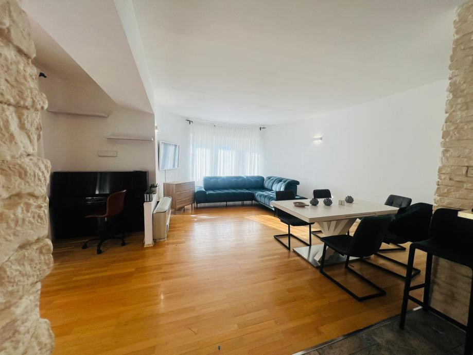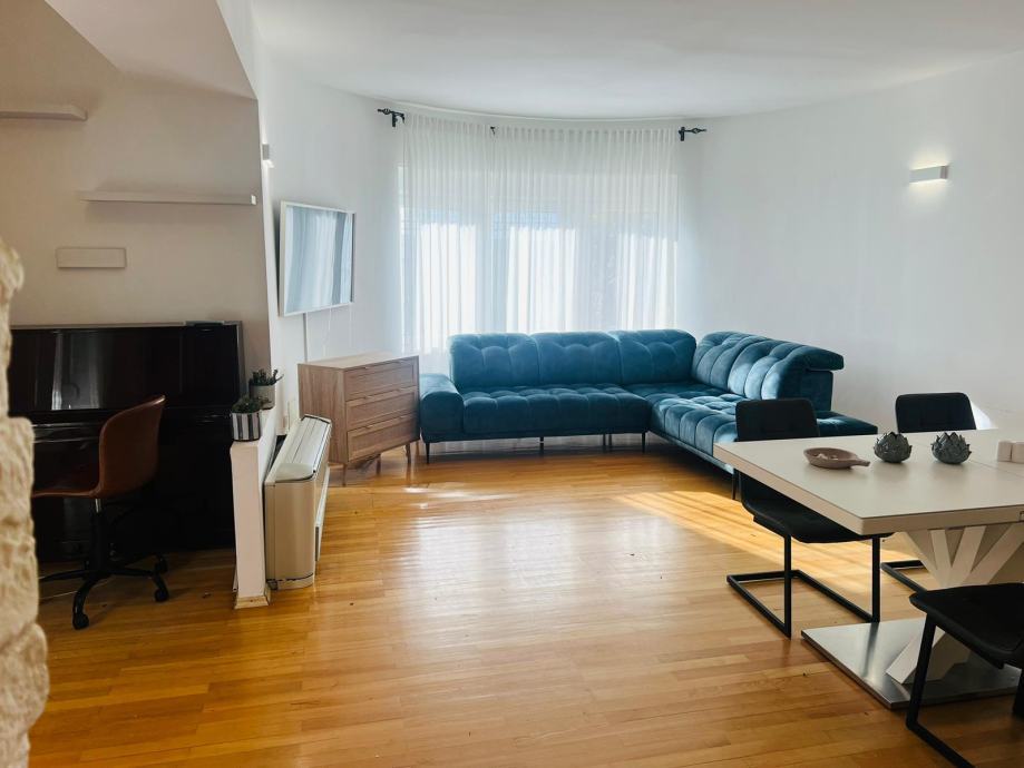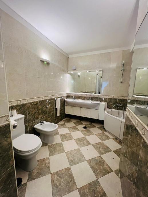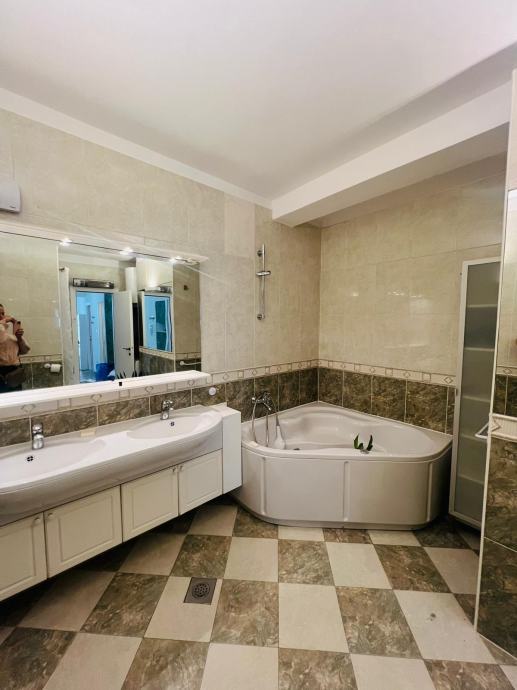 Prostrani trosobni stan površine 114m2, položen u prizemlju manje zgrade da jednoj od najljepših lokacija u Splitu u neposrednoj blizini mora i plaže iznajmljuje se na dugi rok. Stan se sastoji od tri spavaće sobe, dnevnog boravka, kuhinje, dvije kupaonice i terase. Stanu pripada parking mjesto u dvorištu zgrade.