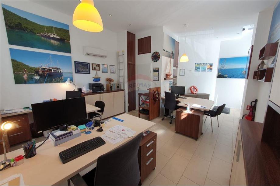 Prostor od 30 m2 je namijenjen za uredsko poslovanje i ima svoj sanitarni čvor. Ulaz u ured se nalazi na glavnoj prometnici. U prostoru je postavljeno podno grijanje i klima. Namještaj se kupuje po dogovoru.