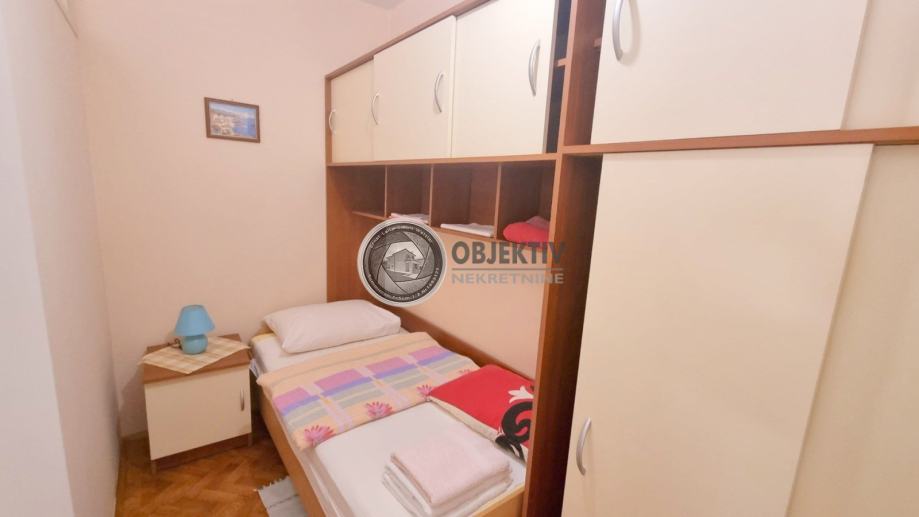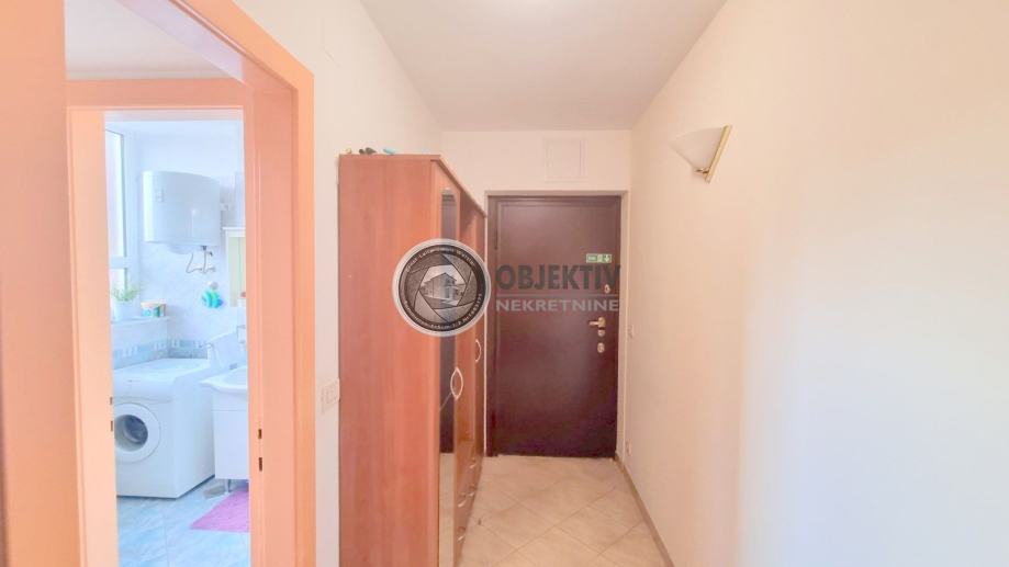 Koncipiran je tako da se ulazi u predsoblje u kojem je kupaonica i zaseban mali wc, zatim na sjevernoj strani prostrana spavaća soba sa zasebnom kupaonicom i izlazom na zatvorenu lođu (može se koristiti kao posebna cjelina kod najma).