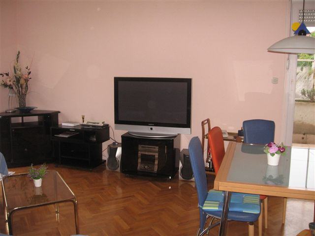 aparatima i posuđem. Apartman je površine 55 m2 i sastoji se od 2 sobe, kuhinje s trpezarijom,