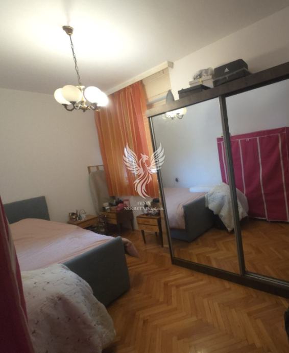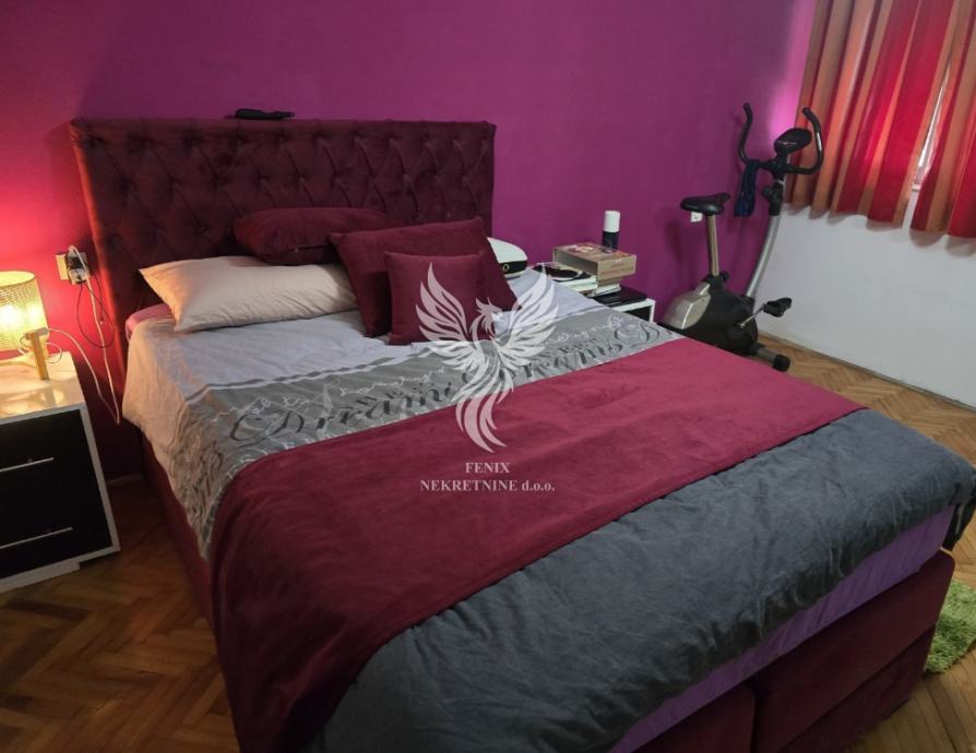 Stan se sastoji od hodnik, dnevnog boravka, kuhinje s blagovaonom, dviju prostranih spavaćih soba, kupaonice i balkona. S obzirom na izvrstan tlocrt, stan ima dosta i dodatnog potencijala oko uređenja. Stan se prodaje sa namještajem.