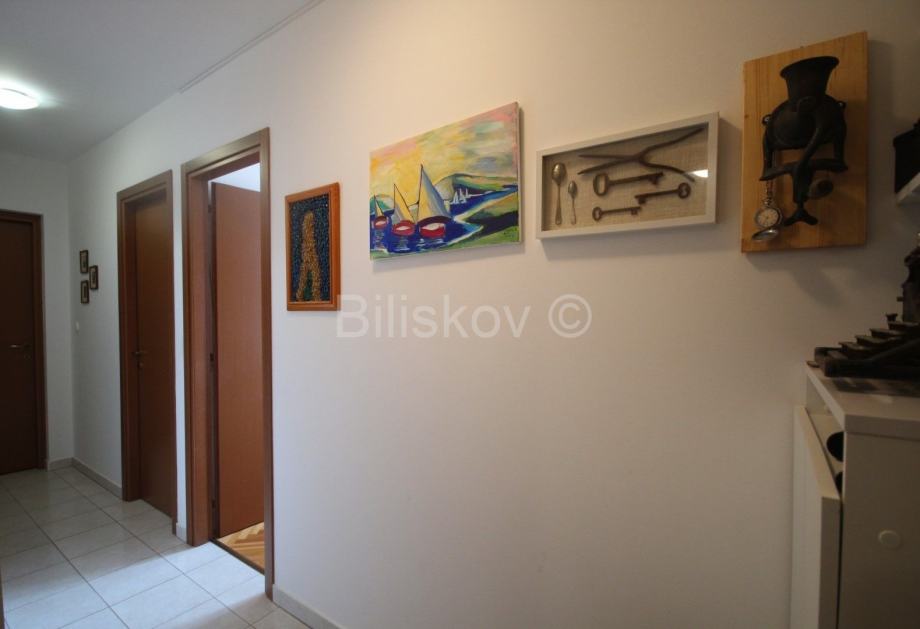 Stambena površina je 85m2, a sastoji se od ulaznog hodnika u kojem je WC i ostava, kuhinje, dnevnog boravka iz kojeg se izlazi na lođu površine 12m2, te drugim hodnikom odvojenog spavaćeg dijela u kojem su 3 spavaće sobe, kupaonica i lođa iz jedne sobe.