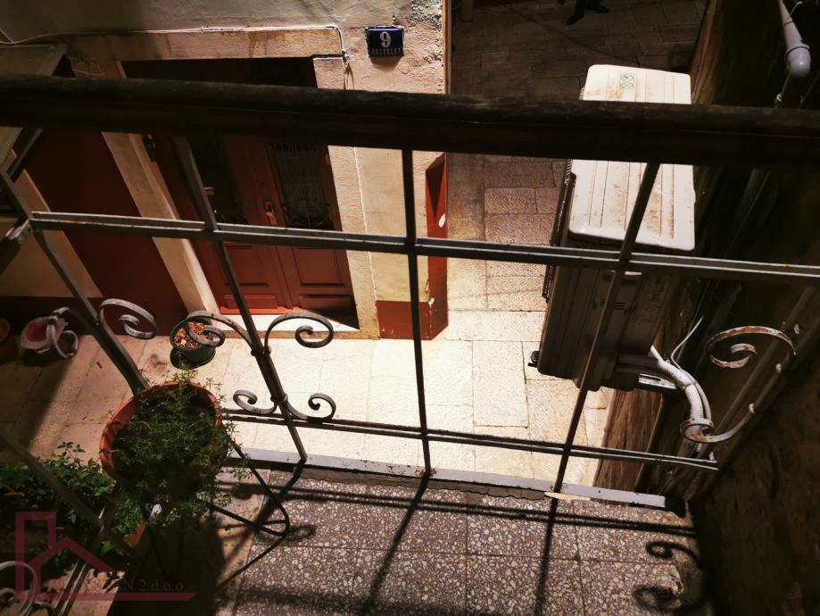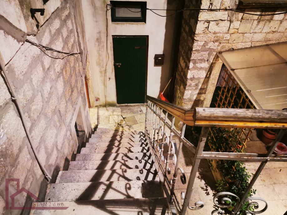 Kao agencija posredujemo u prodaji dvije etaže objekta u srcu Dioklecijanove palače u Splitu. Stanovi koji se prodaju se nalaze na 1. katu i 4. katu koji čini potkrovlje objekta. Na 1. kat se penje vanjskim stepeništem, dok su ostale etaže povezane unutarnjim stepenicama. Stan na 1.katu ima površinu od 60 m2 i renoviran je. U stanu se nalazi ulazni hodnik, ostava ispod stepenica, prostorija u kojoj se nalazi kuhinja sa blagovaonom i dnevnim boravkom, kupatilo wc, predsoblje i dvije spavaće sobe. Unutarnjim stubištem se penje ne 4. etažu koja čini potkrovlje objekta. Krovište iznad stana je promijenjeno i renovirano. Ovaj stan je u izvornom stanju i potrebna je kompletna renovacija. Ima 50 m2 i dosta kosina + dodatnu veliku prostoriju od cca 15 m2 s niskim kosim krovom. U stanu se nalazi hodnik koji dijeli stan na istočni dio s dvije prostorije i zapadni dio gdje se nalaze dodatne 2 prostorije i kupatilo wc. Isključivo se prodaju oba stana skupa. Svaki stan ima zaseban vlasnički list , urednog vlasništva i etažirano. Odlična lokacija za turističko iznajmljivanje, nadomak Rive, Sv. Frane...Cijena stana na 1. katu je 450.000€ a potkrovlja je 250.000€, za oba stana je 700.000€.