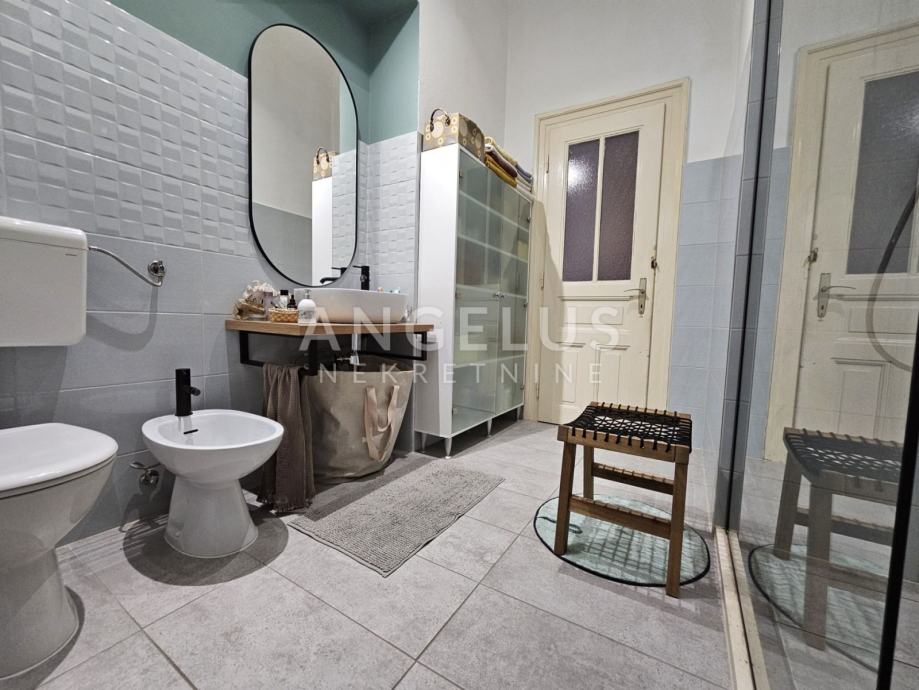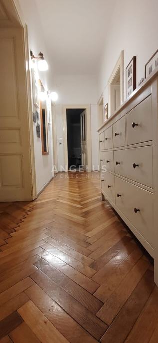 A spacious and comfortable apartment with a total living area of 151 m2 is for sale, located on the 3rd floor of a residential building. The apartment is mainly oriented to the south and west, is full of light, has exceptionally high ceilings and is fully furnished. It consists of an entrance hall, large dining room and kitchen, spacious living room, four bedrooms, bathroom, toilet and storage room. The living room has an exit to the terrace from which there is a magical view of the old part of the city and is a witness to the fact that this apartment was once and now a beautiful place to live. The apartment was completely renovated in 2000, and it can still be lived in without any significant changes.