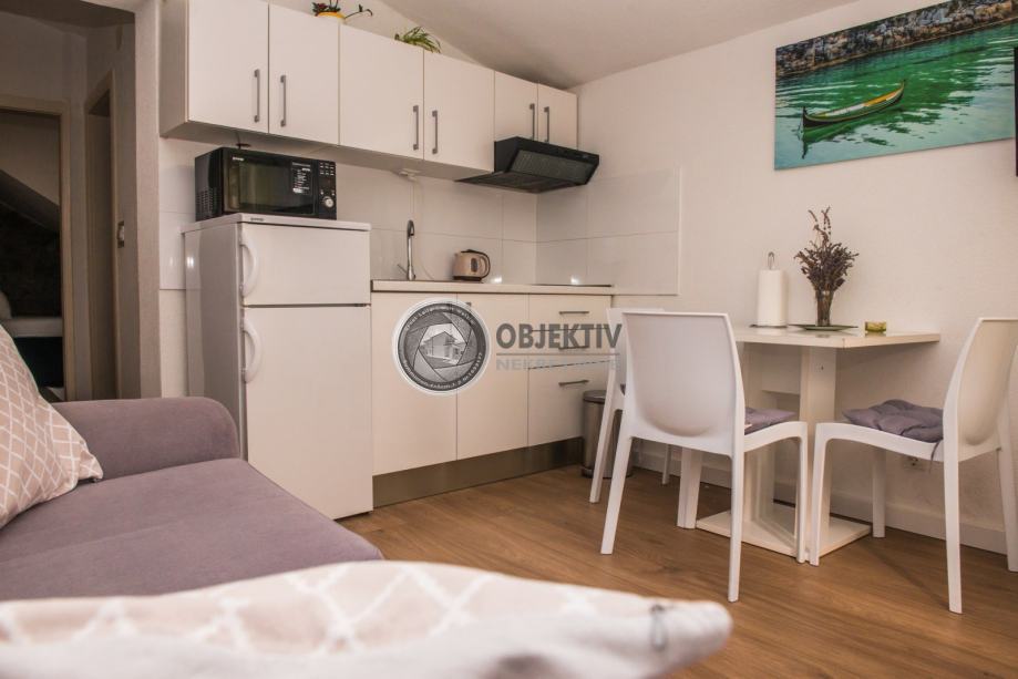 Na prvom katu je jednosobni apartman površine 34m2 sa balkonom .