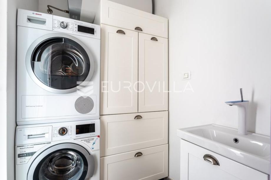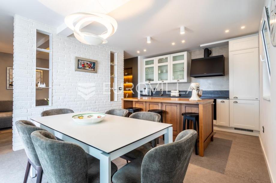Ekskluzivna ponuda Euroville - centar Splita, ulica Ljudevita Posavskog.Predstavljamo stan smješten na 6. katu (predzadnji kat) zgrade s liftom, zapadne orijentacije, ukupne NKP 124,56 m².Stan se sastoji od ulaznog hodnika, kuhinje s blagovaonicom, prostranog dnevnog boravka s izlazom na djelomično natkrivenu terasu, tri spavaće sobe (od kojih jedna s vlastitom kupaonicom), dodatne kupaonice te ostave/praonice. S terase se pruža otvoren pogled na Marjan, grad i djelomičan pogled na more. Na terasi su provedeni voda i struja, što omogućava uređenje vanjske kuhinje.Stan je kompletno moderno opremljen i namješten, s kvalitetnim parketom i vrhunskom keramikom, dok je u kupaonicama izvedeno podno grijanje. Sve prostorije klimatizirane, što osigurava maksimalnu udobnost.Nekretnini pripada terasa od 27,37 m², dupla zatvorena garaža površine 27,76 m2 s ostavom. Lift iz garaže vodi do kata stana, što predstavlja dodatnu udobnost i sigurnost.Stan je renoviran 2017. godine, bez dodatnih ulaganja, odmah useljiv.Lokacija u ulici Ljudevita Posavskog osigurava mirno i ugodno stanovanje, a ujedno blizinu svih sadržaja koje pruža centar Splita. Ovakva nekretnina predstavlja rijetkost na tržištu, dodatno naglašena pogodnošću dva zatvorena garažna mjesta.Za više informacija i dogovor oko razgleda, slobodno nas kontaktirajte....Za ovu nekretninu kontaktirajte agenta na broj telefona +385 91 615 4258.Više na Eurovilla.hr, ID: 805044Direktan link: https://eurovilla.hr/nekretnina/split-centar-trosoban-stan-s-duplom-garazom-nkp-124-m2/805044/-----... For this property contact our agent on telephone number +385 91 615 4258.More on Eurovilla.hr, ID: 805044Direct link: https://eurovilla.hr/en/property/split-city-center-three-bedroom-apartment-with-double-garage-ufa-124-m2/805044/...