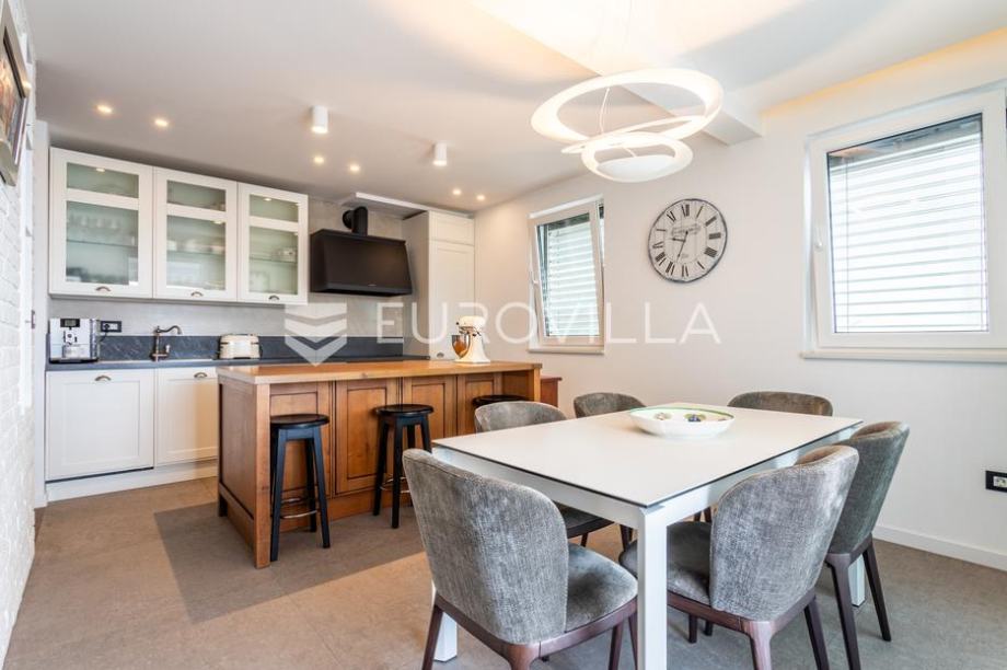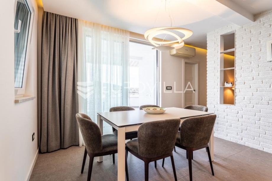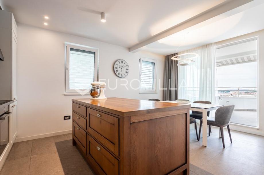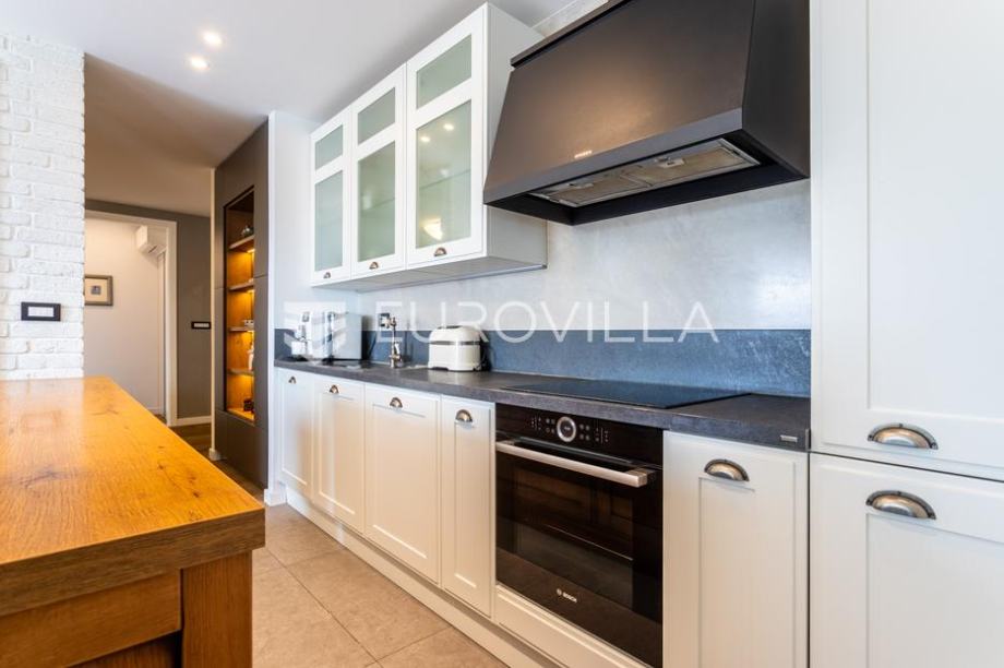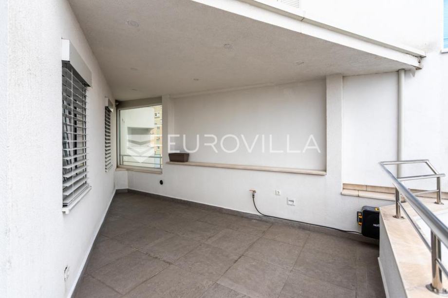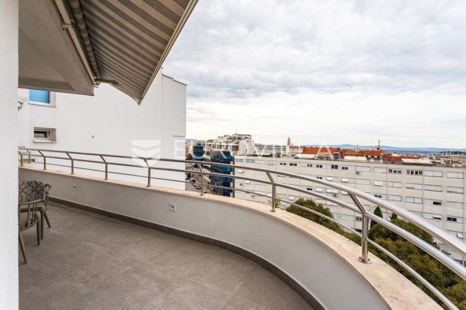 Ekskluzivna ponuda Euroville - centar Splita, ulica Ljudevita Posavskog.Predstavljamo stan smješten na 6. katu (predzadnji kat) zgrade s liftom, zapadne orijentacije, ukupne NKP 124,56 m².Stan se sastoji od ulaznog hodnika, kuhinje s blagovaonicom, prostranog dnevnog boravka s izlazom na djelomično natkrivenu terasu, tri spavaće sobe (od kojih jedna s vlastitom kupaonicom), dodatne kupaonice te ostave/praonice. S terase se pruža otvoren pogled na Marjan, grad i djelomičan pogled na more. Na terasi su provedeni voda i struja, što omogućava uređenje vanjske kuhinje.Stan je kompletno moderno opremljen i namješten, s kvalitetnim parketom i vrhunskom keramikom, dok je u kupaonicama izvedeno podno grijanje. Sve prostorije klimatizirane, što osigurava maksimalnu udobnost.Nekretnini pripada terasa od 27,37 m², dupla zatvorena garaža površine 27,76 m2 s ostavom. Lift iz garaže vodi do kata stana, što predstavlja dodatnu udobnost i sigurnost.Stan je renoviran 2017. godine, bez dodatnih ulaganja, odmah useljiv.Lokacija u ulici Ljudevita Posavskog osigurava mirno i ugodno stanovanje, a ujedno blizinu svih sadržaja koje pruža centar Splita. Ovakva nekretnina predstavlja rijetkost na tržištu, dodatno naglašena pogodnošću dva zatvorena garažna mjesta.Za više informacija i dogovor oko razgleda, slobodno nas kontaktirajte....