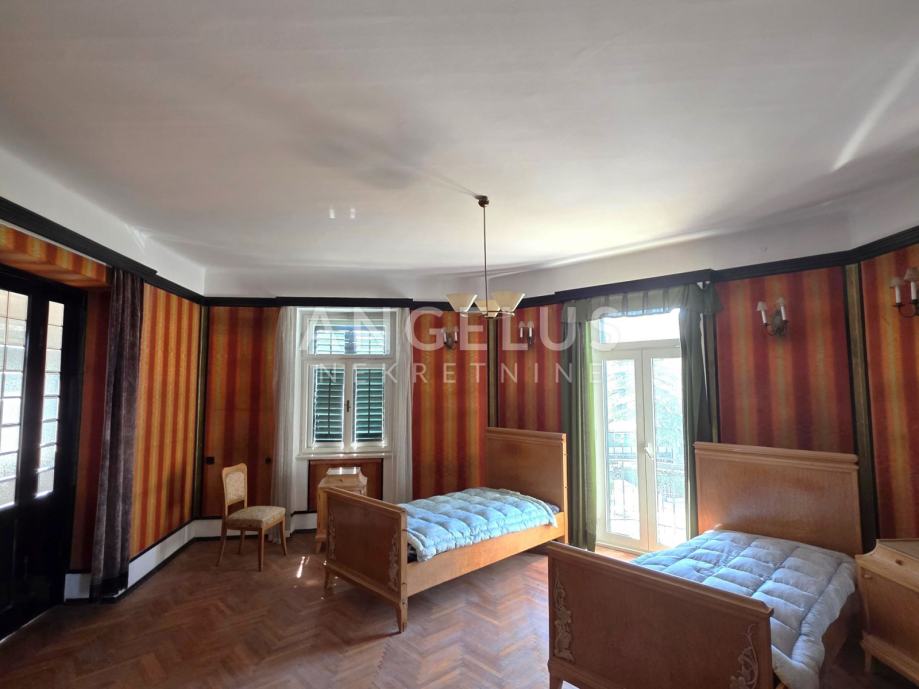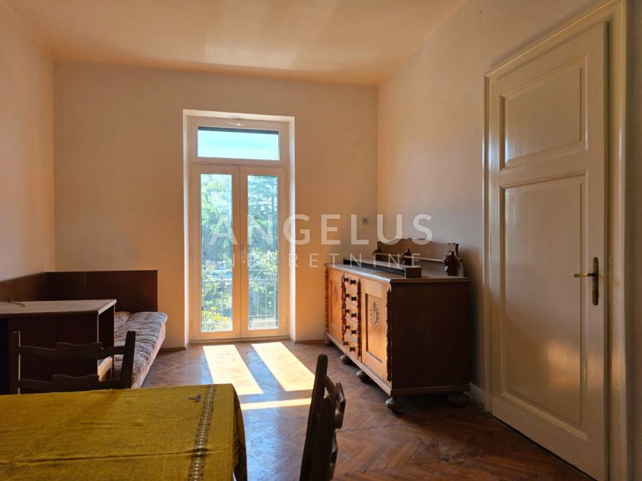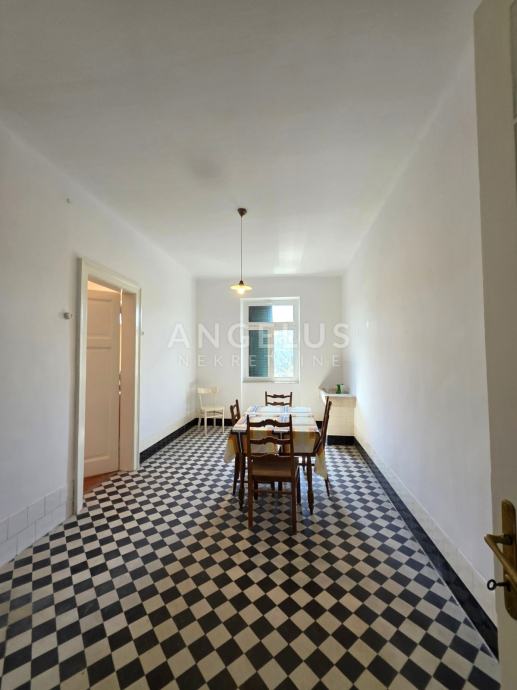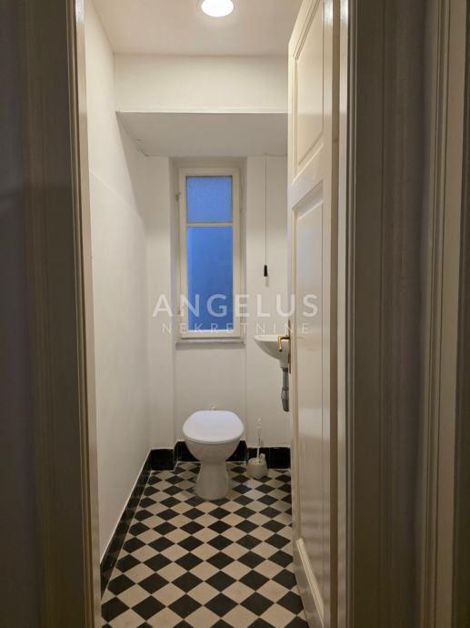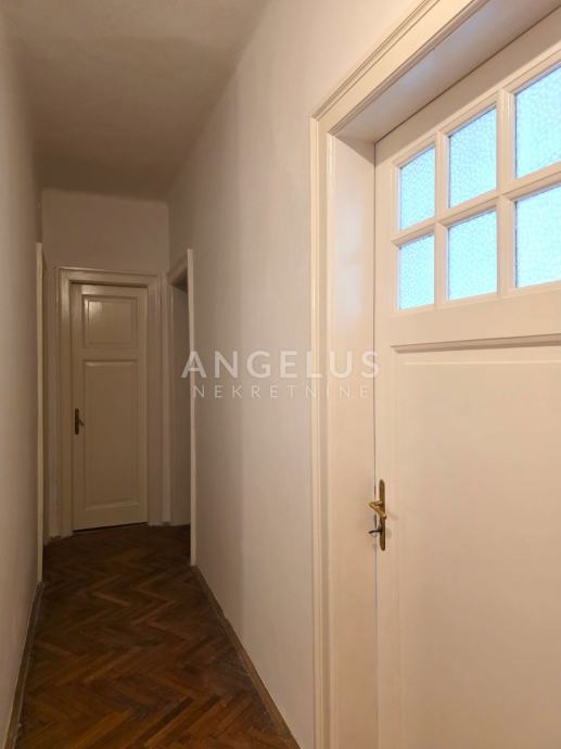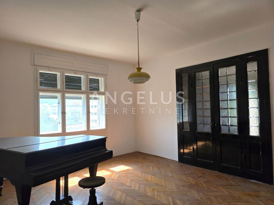 Stan je ukupne stambene površine 165,68 m2 te se sastoji 6 zasebnih velikih soba i 2 pomoćne prostorije, velikog hodnika, toaleta i prostorije koja je pripremljena da bude kupaonica ali po potrebi zakupoprimca može ostati kao dodatan ured. Stan ima dva balkona. Orijentacija je istok, jug i sjever. Visoki plafoni i veliki prozori čine ga komfornim i sunčanim.