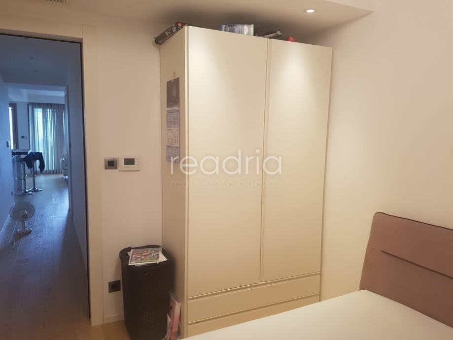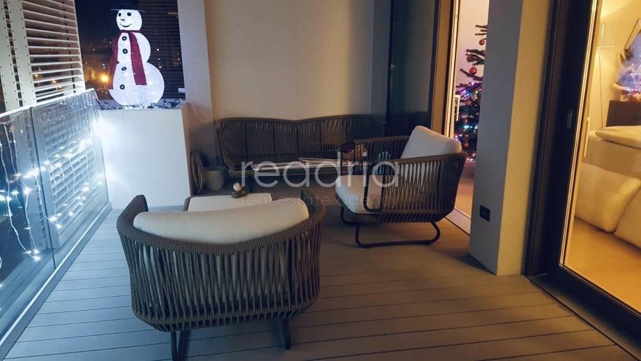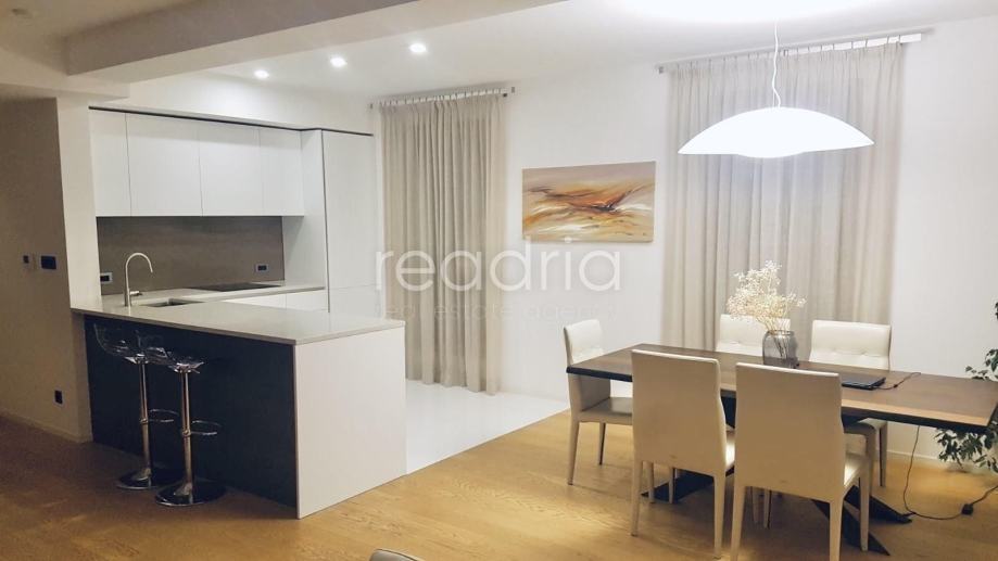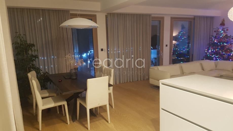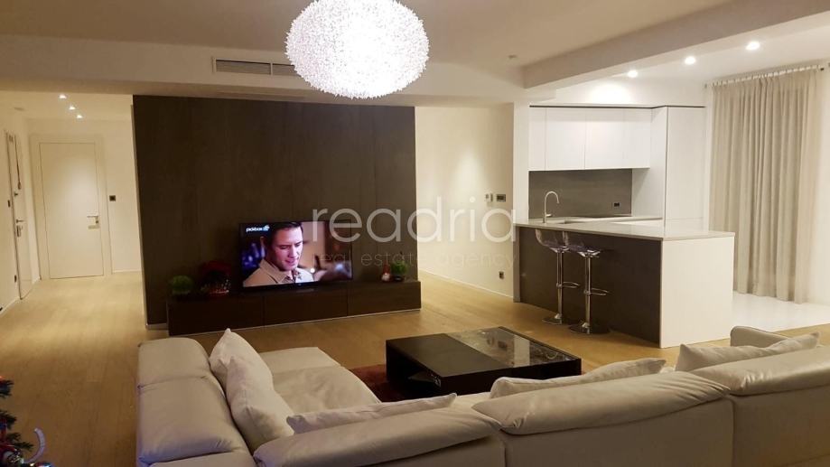 Svaka prostorija je klimatizirana, a stan obiluje prirodnim svjetlom te je u potpunosti namješten kvalitetnim i pažljivo odabranim namještajem.