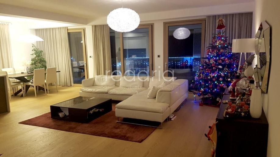 Stan se prostire na 160 m² i sastoji se od tri spavaće sobe dvije kupaonice i dodatnog toaleta prostranog dnevnog boravka otvorenog koncepta s kuhinjom iblagovaonicom i velike terase s pogledom na more