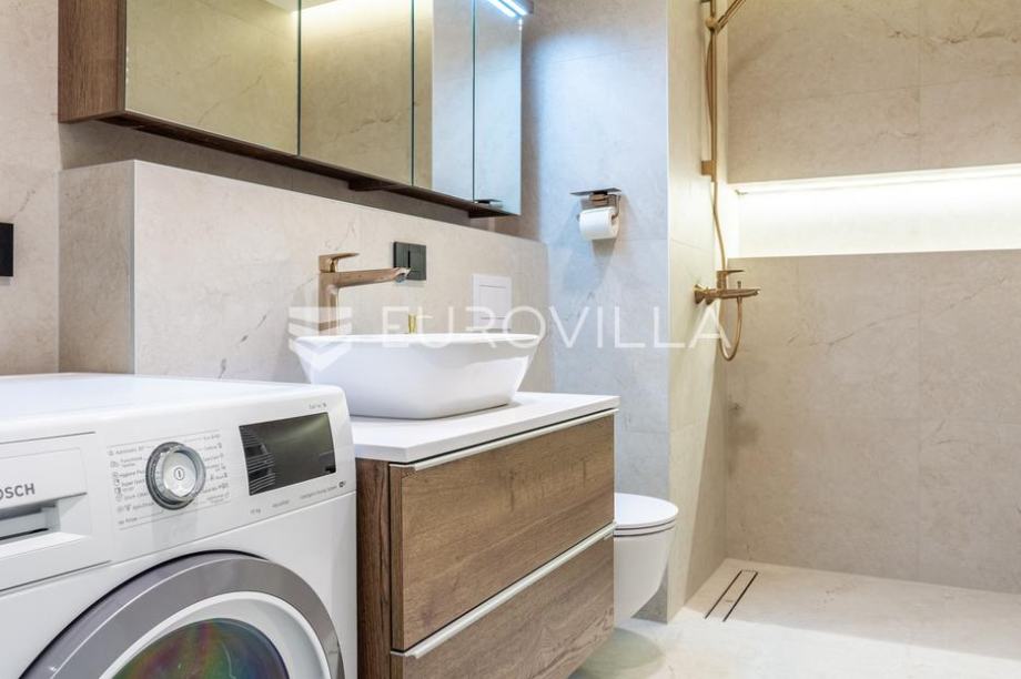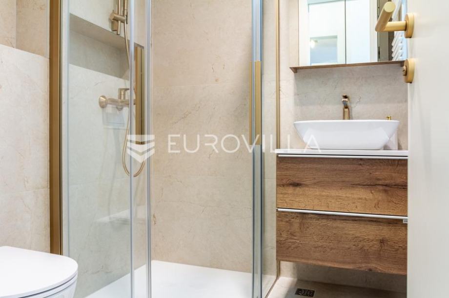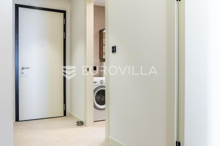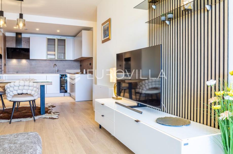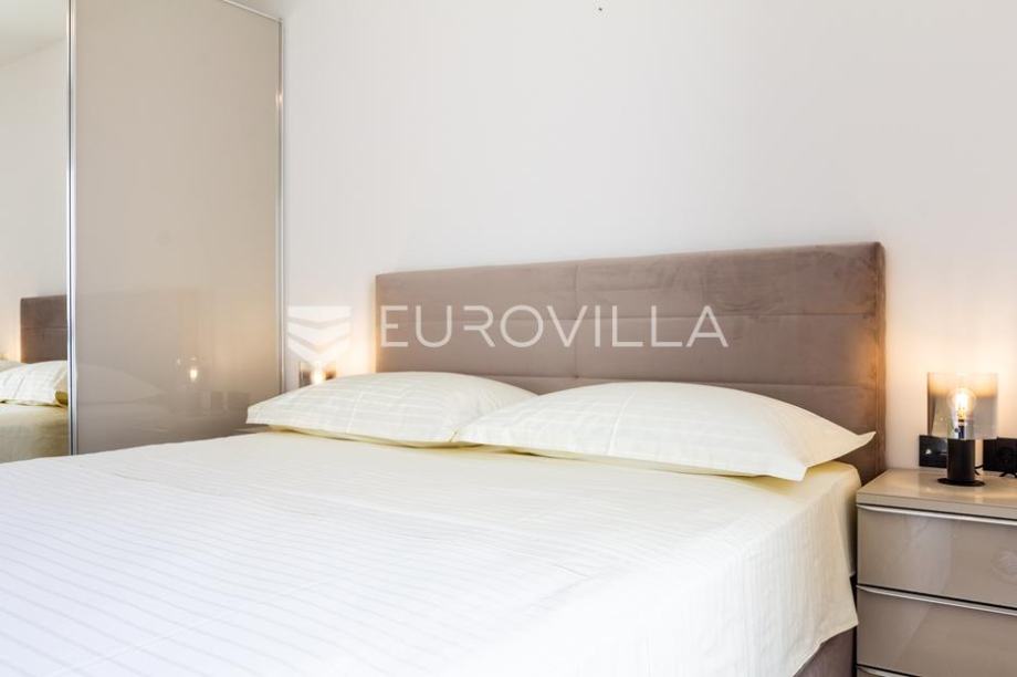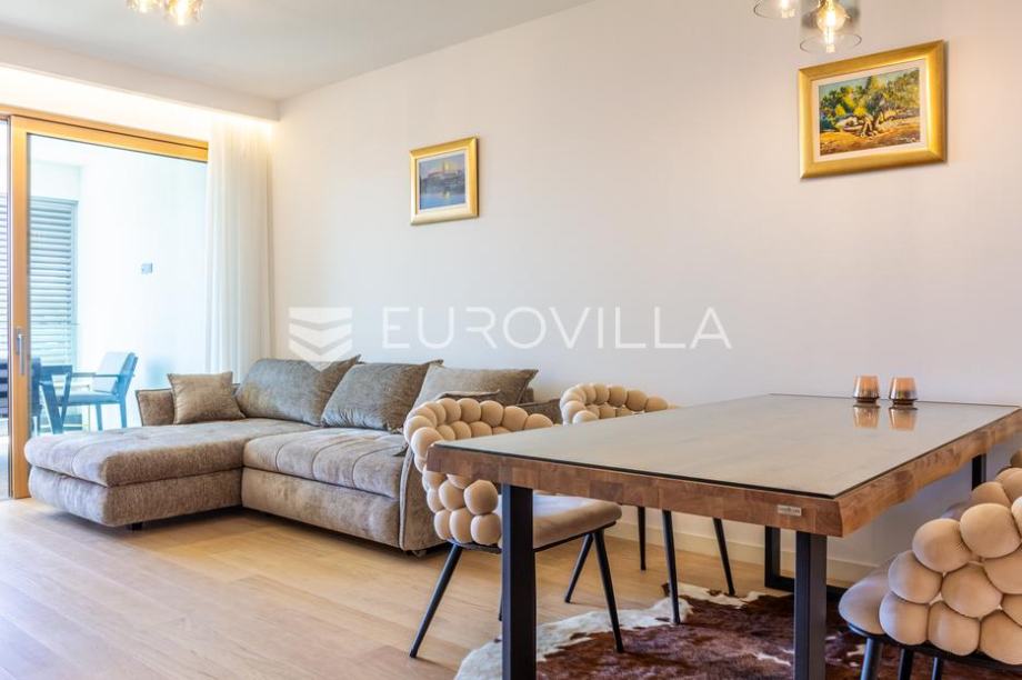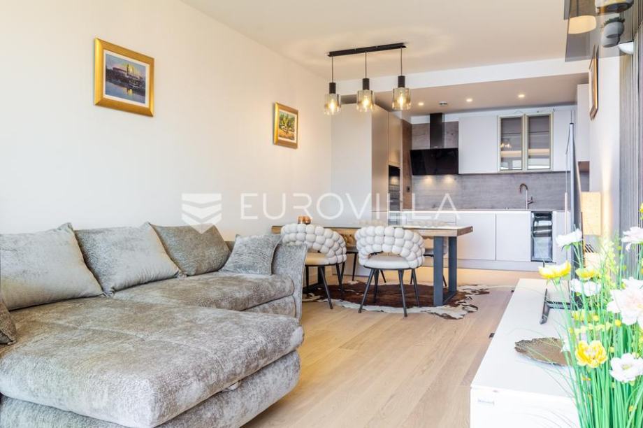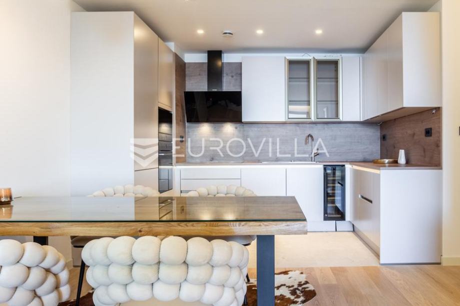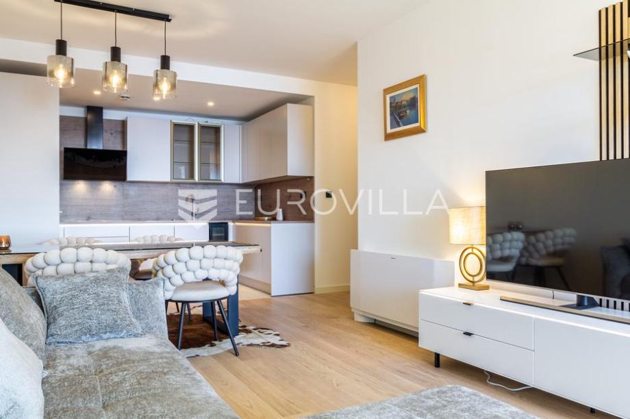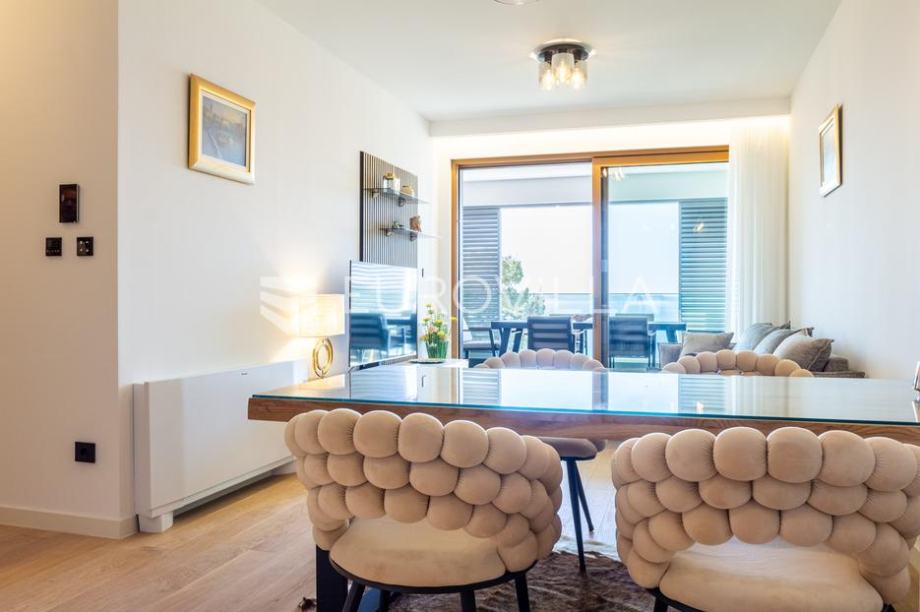 Split, Bel Etage 2 , moderno uređen i potpuno opremljen dvosoban stan u luksuznom novoizgrađenom objektu. Položen je na prvom katu, južne orijentacije, s obiljem prirodnog svijetla i predivnim pogledom na more.Unutarnji raspored pažljivo je osmišljen: ulazni hodnik vodi do dvije moderno uređene spavaće sobe i dvije elegantne kupaonice, dok je dnevna zona koncipirana kao otvoreni prostor koji povezuje kuhinju, blagovaonicu i dnevni boravak - sve s izlazom na prostranu lođu ( 17, 9 m2 ) s pogledom na more.Stan je opremljen po najvišim standardima: Smart Home sustav s pametnom bravom, upravljanje rasvjetom, grijanjem i hlađenjem, dizalica topline, vodeno podno grijanje te klimatizacija u svakoj prostoriji.U cijenu najma uključeno je garažno parkirno mjesto u podzemnoj garaži, kao i spremište na razini recepcije. Stanarima su dodatno na raspolaganju recepcija 24/7, wellness i fitness centar unutar zgrade.Režije nisu uključene u cijenu.Za više informacija ili dogovor oko razgleda, slobodno nas kontaktirajte....