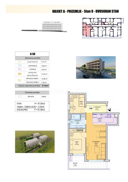 A-S9 2-sobni jug-zapad 61,38 4.750,00 291.555,00€