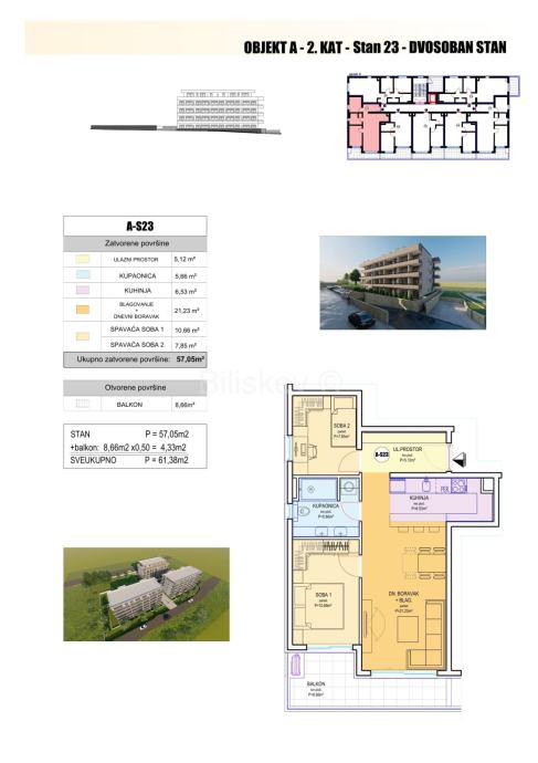 A-S6 2-sobni jug-istok 62,57 4.500,00 281.565,00€