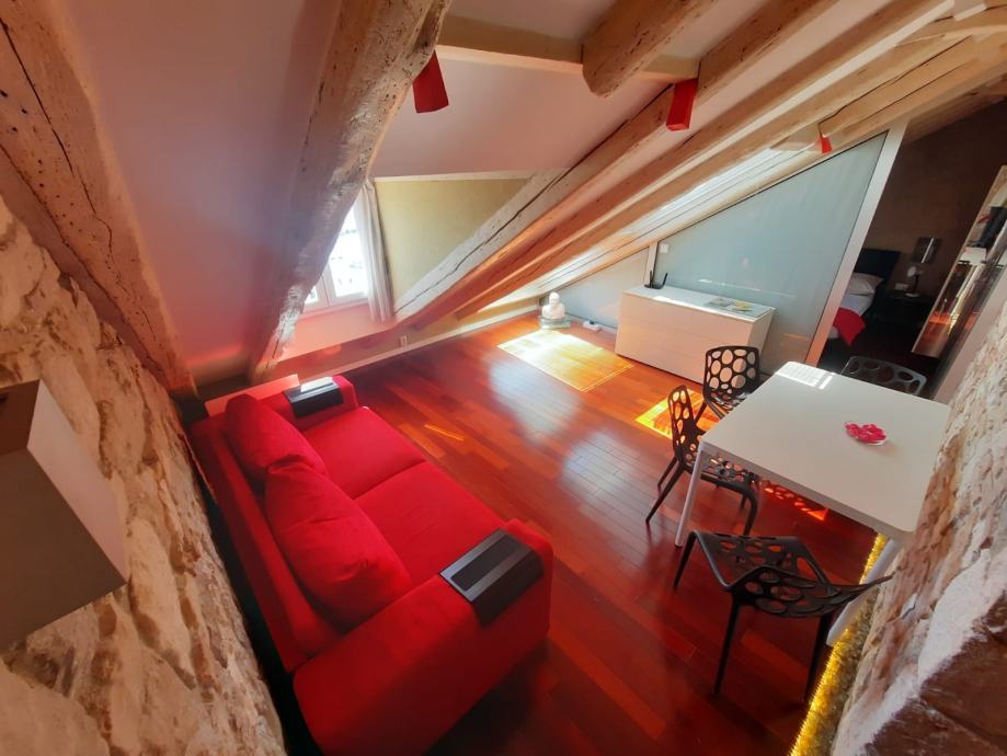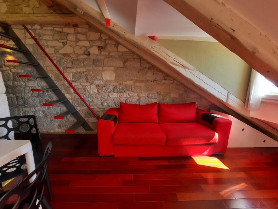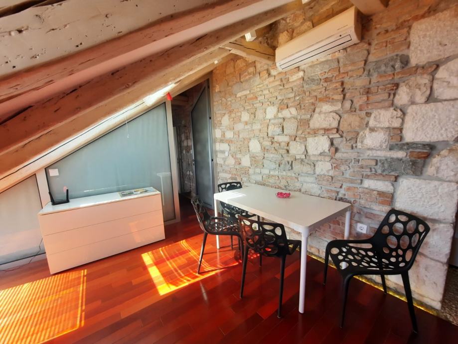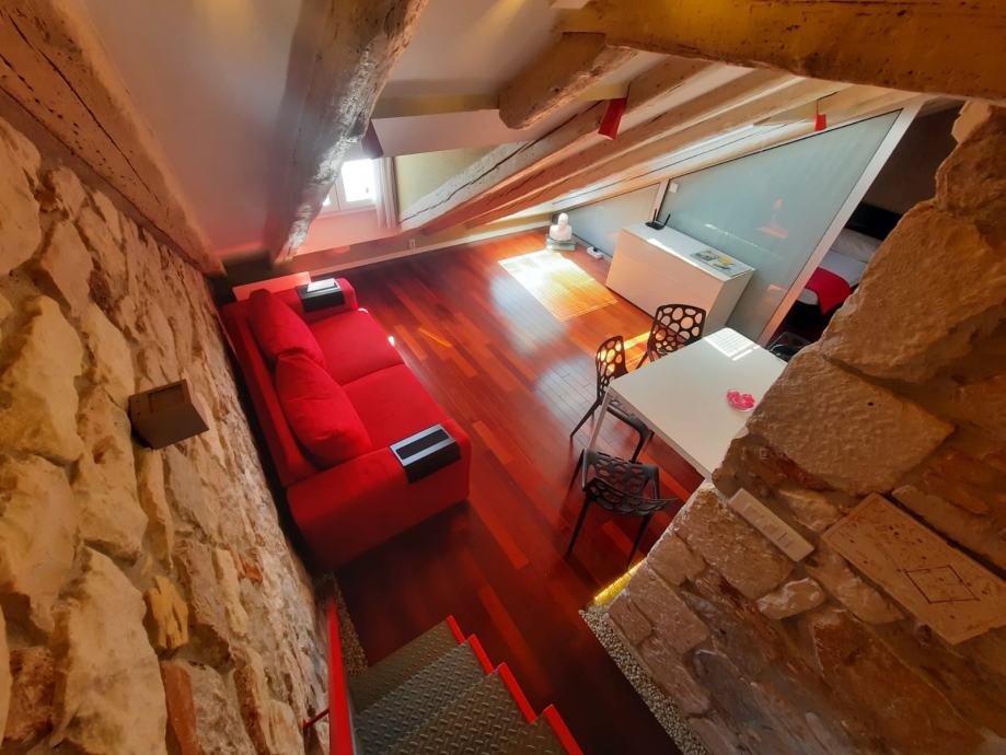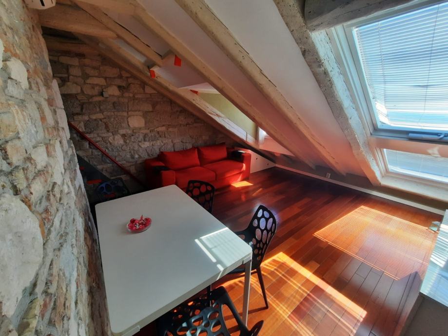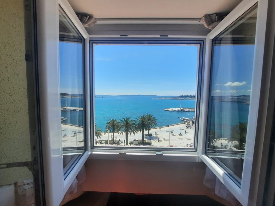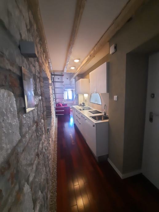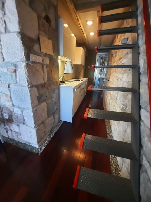 Posredujemo u prodaji lijepog i šarmantnog stana smještenog u samom centru grada. Isti se nalazi u zgradi , na 4. katu. Raspoređen je na dvije etaže. Na prvoj etaži se nalazi ulaz, kupatilo s pogledom na zvonik sv. Duje, kuhinja, dnevni boravak s blagovaonom i spavaća sobe iz koje se pruža predivan pogled na Rivu, more, otoke. Na drugoj etaži tj. galeriji je smještena još jedna spavaća soba.