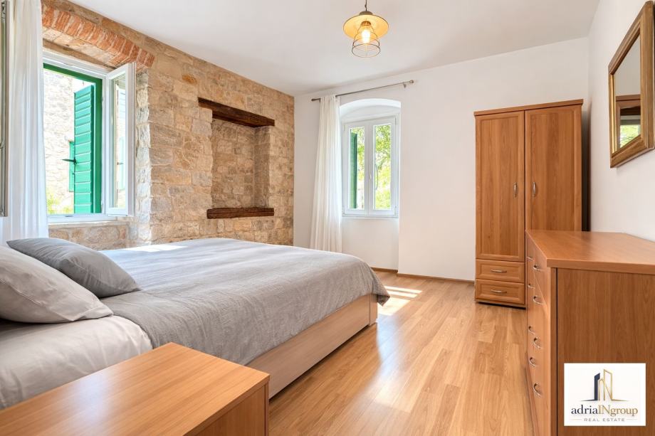 Interijer stana velikim je dijelom u kamenu, što mu daje poseban dalmatinski šarm i autentičnost.