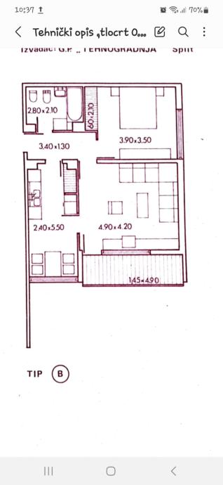 Na izvrsnoj lokaciji predjela Gripe u stambenoj zgradi prodaje se stan od 64 m2.Stan se nalazi na prvom katu zgrade i jugo-istočne je orijentacije.Sastoji se od hodnika,kupaonice,sobe,kuhinje sa blagavaonicom,velikog dnevnog boravka(mogućnost dobijanja druge sobe) i južne lođe.Stanu pripada i drvarnica u prizemlju zgrade.