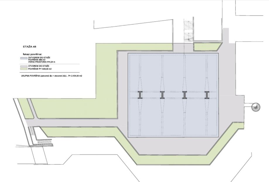 Prostor je cijeli polozen na etazi prizemlja i zakupoprimac ga moze potpuno ostakliti te tako imati izlog na sve cetiri strane svijeta.
