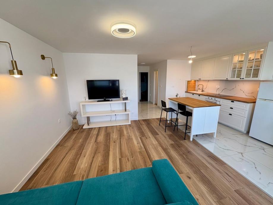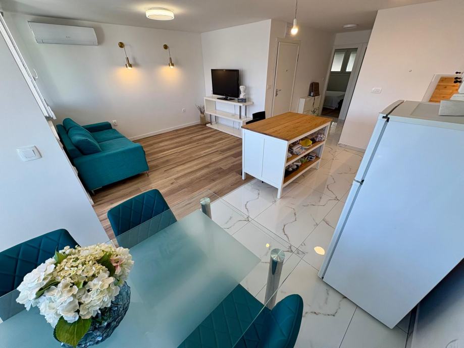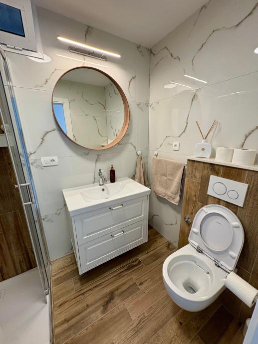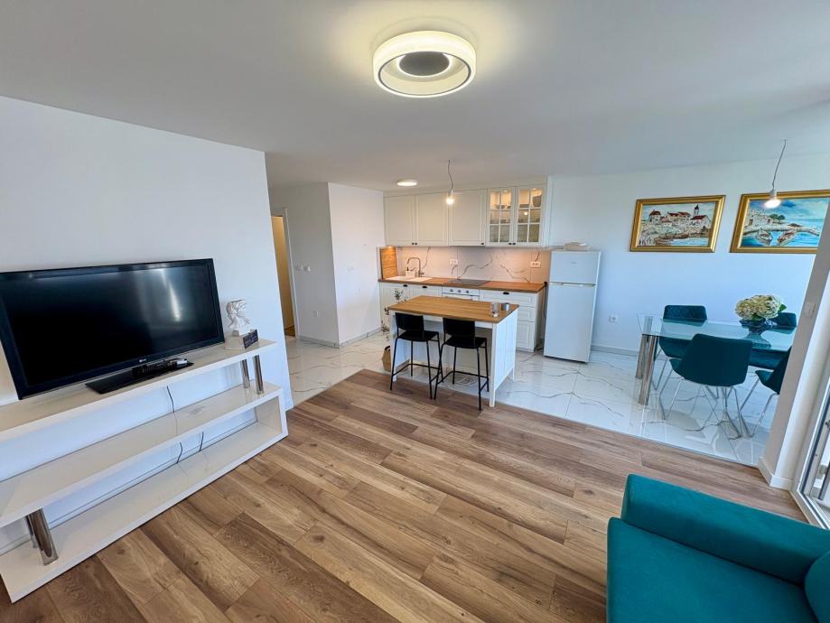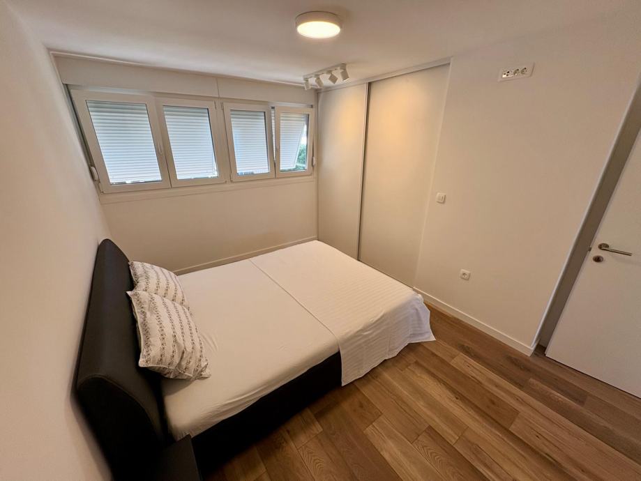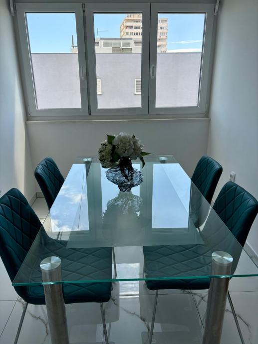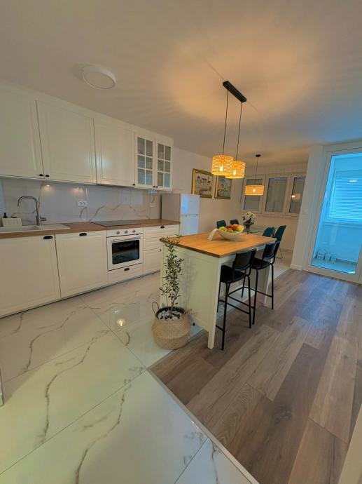 Stan je temeljito obnovljen – od instalacija i podova do stolarije i kupaonice – te se iznajmljuje po prvi put, s potpuno novim i nekorištenim namještajem i aparatima. Sastoji se od dvije udobne spavaće sobe, prostranog i svijetlog dnevnog boravka, moderno uređene kuhinje s blagovaonicom, kupaonice te zatvorene loggie koja može služiti kao prostor za opuštanje ili rad.