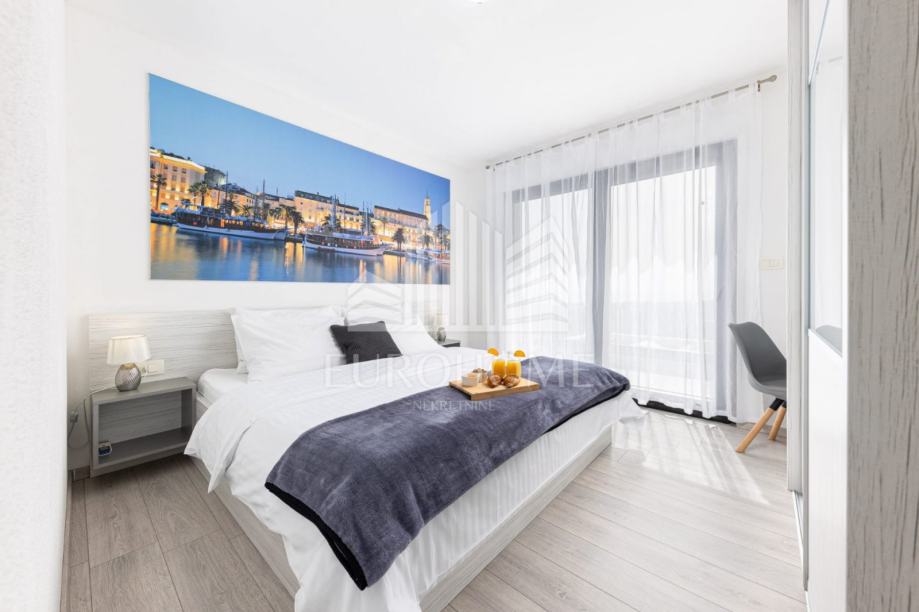 Grad Split, poznat po bogatoj povijesti, Dioklecijanovoj palači (pod zaštitom UNESCO-a), kulturnim manifestacijama te živahnoj obali i gastronomiji, udaljen je svega nekoliko minuta vožnje. Lokacija vile omogućuje brz pristup svim potrebnim sadržajima – plažama, marinama, restoranima i trgovinama – dok istovremeno pruža mir i intimu.