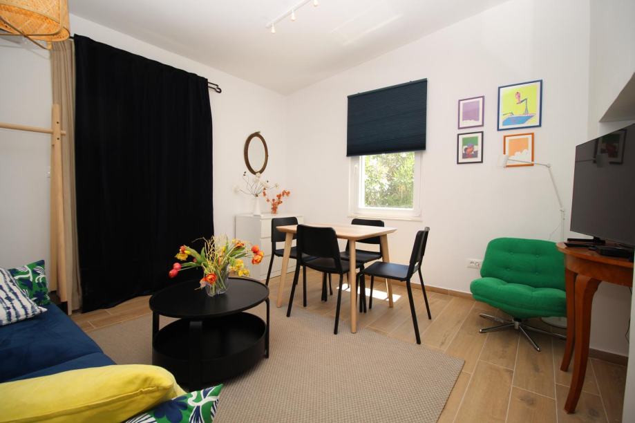 Iznajmljujemo jednosoban stan u manjoj stambenoj zgradi, stan se nalazi u prizemlju zgrade površine je 50m2 i orijentacije jug-istok. Sastoji se od ulaza, kuhinje, dnevnog boravka sa blagavaonom, spavaće sobe i kupaonice.Sve prostorije u stanu su klimatizirane. U sklopu stana nalazi se privatno zatvoreno dvorište sa natkrivenom sjenicom površine 50m2. Osigurano parking mjesto. Stan se nalazi u blizini Hotela Corner, nije na glavnoj prometnici, u mirnom okružnju. Idealno za poslovne ljude, studente Pravnog fakulteta te studije u Kopilici. Dostupan od 01.10.2025.- 01.06.2026. Režije se plaćaju posebno.