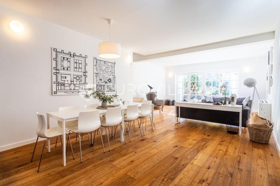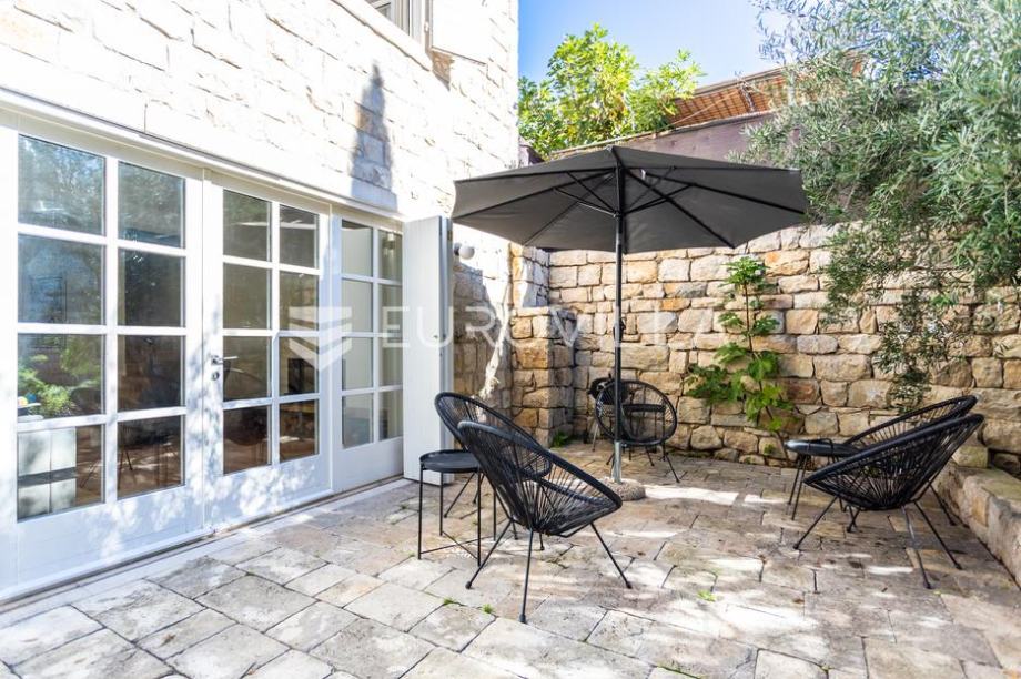 Split, u centru grada nalazi se kamena kuća dostupna za najam izvan turističke sezone.Prostire se na 246 m2 stambene površine podjeljene na četiri etaže, a okružena je s 215 m2 uređenog vrta. Nalazi se u mirnoj ulici, nadomak svih gradskih sadržaja, restorana i znamenitosti.U prizemlju se nalazi open space dnevni boravak i kuhinja iz kojeg se spušta u podrum, gdje se nalazi gostinjska soba, tuš, sauna i praonica. Na prvom katu nalaze se dvije spavaće sobe sa zajedničkom kupaonicom, te manji dnevni boravak s izlazom na balkon. U potkrovlju, preko cijele etaže prostire se glavna spavaća soba s velikom kadom i zasebnom kupaonicom.Cijeli objekt ima jugo- zapadnu orijentaciju, što osigurava puno prirodnog svjetla, a vrt pruža ugodan prostor za boravak na otvorenom.Za sve ostale informacije i upite, stojimo Vam uvijek na raspolaganju....
