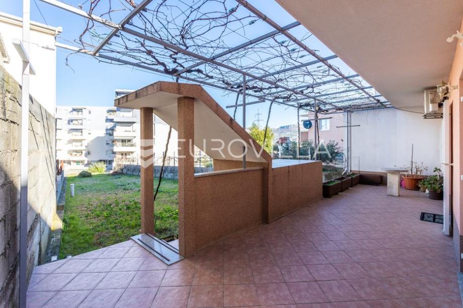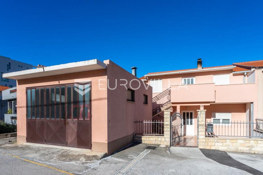 Split, Kila, semi-detached house with an area of 290 m2, ground floor and two floors. On the land with a total area of 428 m2, there are also two auxiliary buildings, a garage with a storage area of 66 m2 and a separate storage area of 15 m2. The house consists of 3 residential units, one...