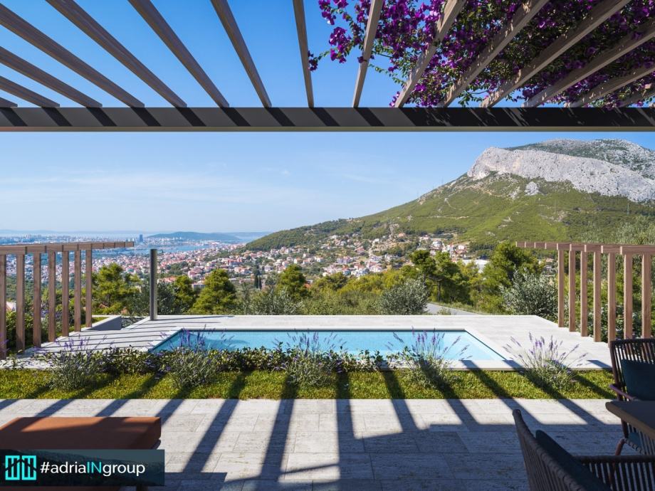The land is located in an excellent location in Klis, with a spectacular view of the sea, the islands of Brač, Šolta and Split, and is surrounded by other villas with swimming pools.