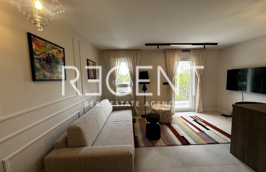 Stan se nalazi na prvom katu stambene zgrade te je potpuno opremljen i dizajniran do najsitnijih detalja. Sastoji se od hodnika koji vodi u open space dnevni boravak s kuhinjom i blagovaonicom, spavaće sobe, kupaonice te balkona.
