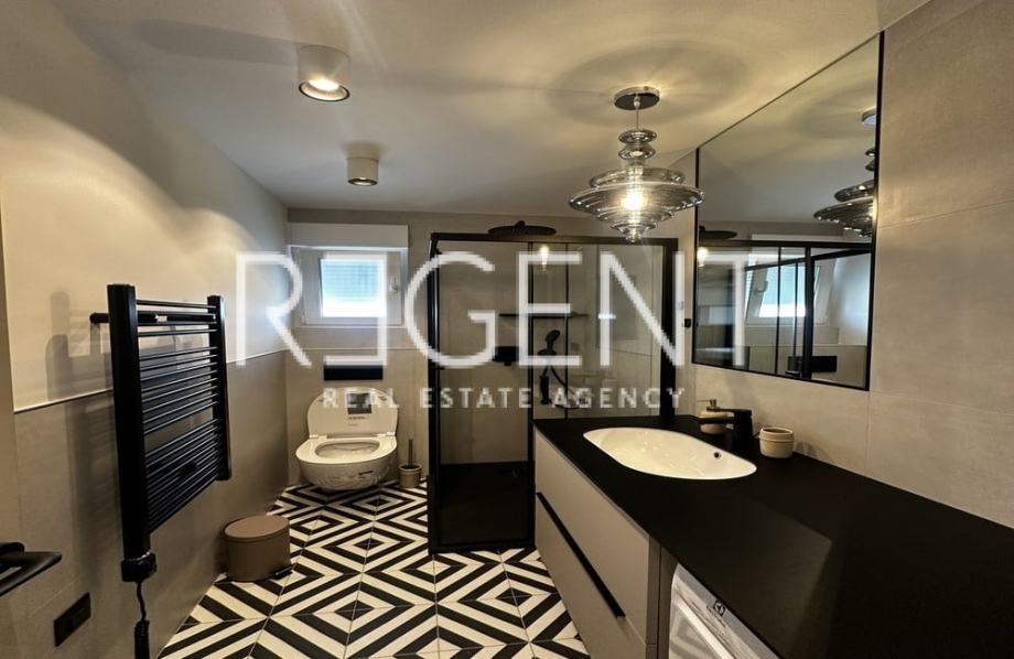 Odlikuje se modernom opremljenošću, uključujući brzi internet, televizor, te klimatizaciju u svakoj prostoriji za maksimalnu udobnost. Kupaonica je opremljena podnim grijanjem, a dodatnu sigurnost i praktičnost pružaju portafon i videnadzor.