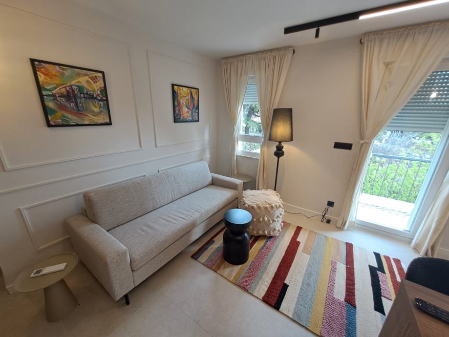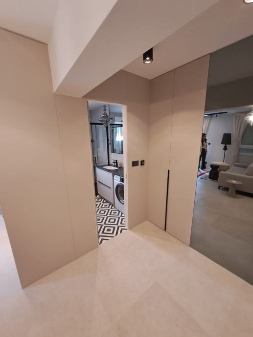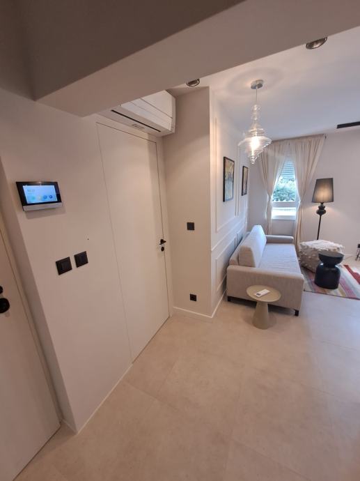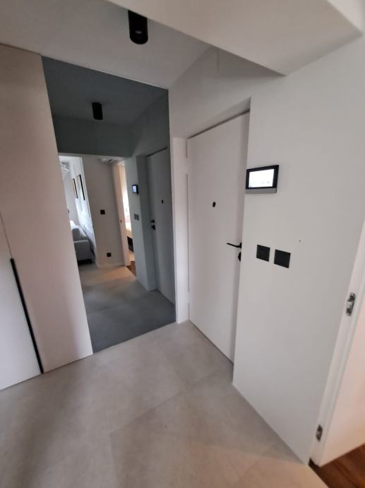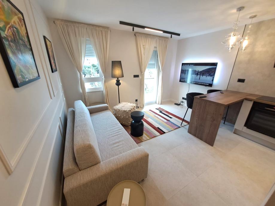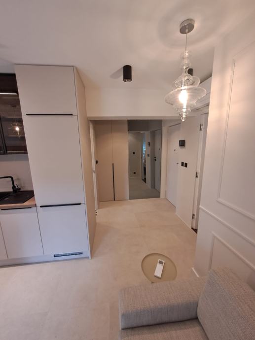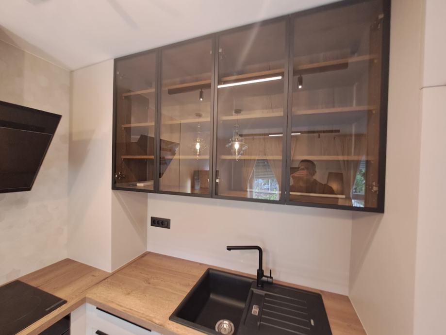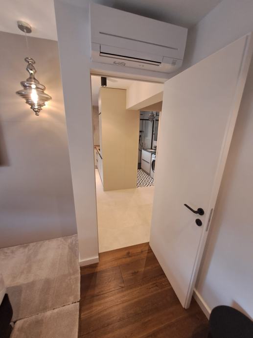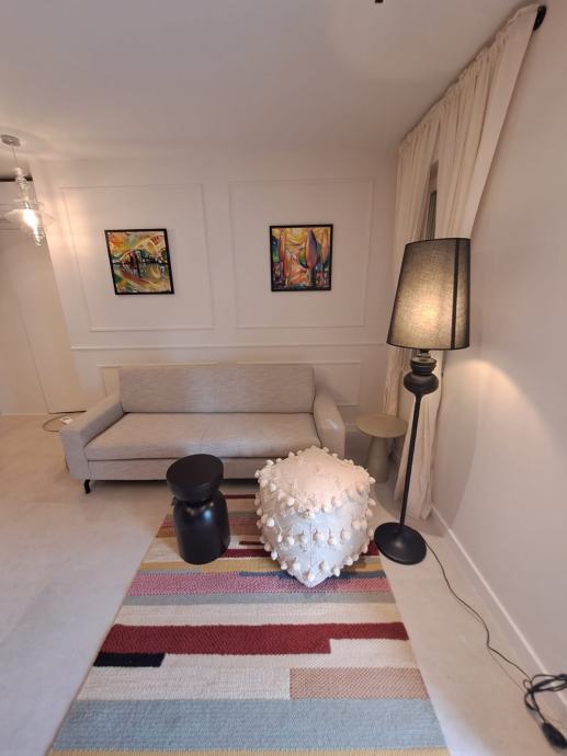 Modern one bedroom apartment situated on second floor in the building. It consist of one bedroom, living room, kitchen with dining room, bathroom and a balcony . The apartment has a modern fully equipped kitchen with dining table, a living room, with smart TV and bathroom with shower.