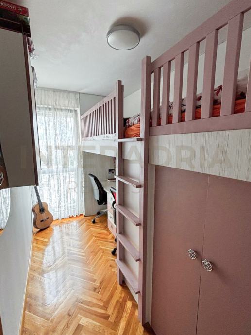 Raspored je iznimno funkcionalan: tri spavaće sobe, prostrani dnevni boravak, kuhinja s blagovaonicom, balkon/lođa s izlazom iz dnevnog boravka, kupaonica i dodatni WC s prostorom predviđenim za perilicu i sušilicu.