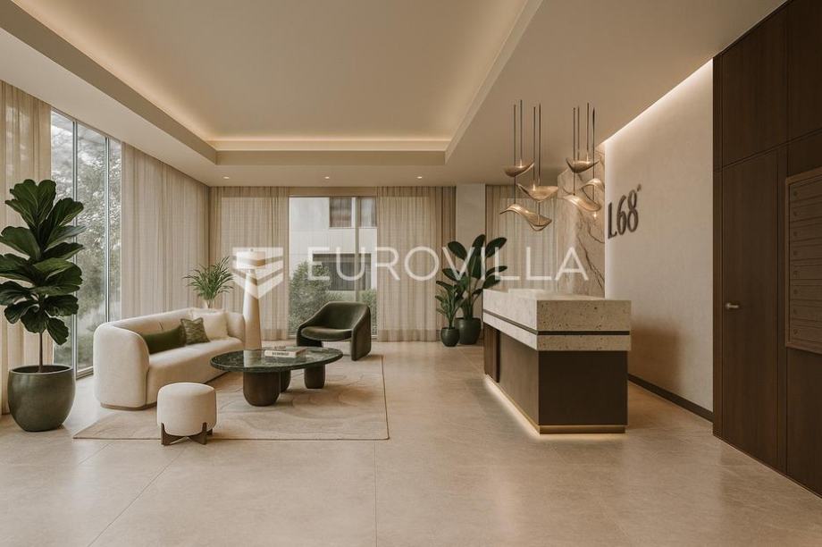 Split, Lora - a modern and elegant apartment with a total net usable area of 109.39 m², located on the sixth floor of one of Split’s most prestigious new developments - Lora 68°.The apartment consists of a spacious living room with large glass walls and access to the loggia, a kitchen with...