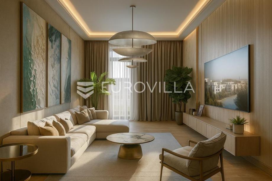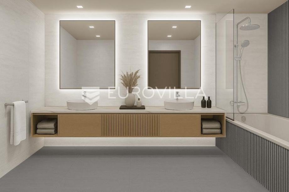 Split, Lora - a modern and elegant apartment with a total net usable area of 109.39 m², located on the sixth floor of one of Split’s most prestigious new developments - Lora 68°.The apartment consists of a spacious living room with large glass walls and access to theloggia, akitchen with dining...