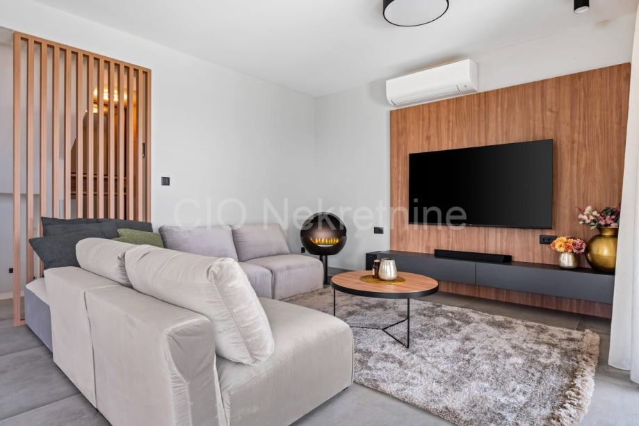 Vila je opremljena solarnim panelima, ima sve potrebne sadržaje i građena je visokokvalitetnim materijalima. Sve sobe su klimatizirane s ugrađenim podnim grijanjem, te opremljena vrhunskim brendiranim namještajem. Ispred vile nalaze se 4 parkirna mjesta.