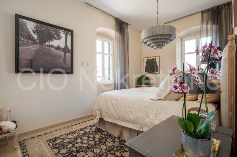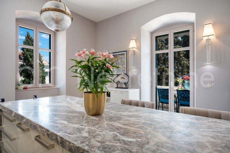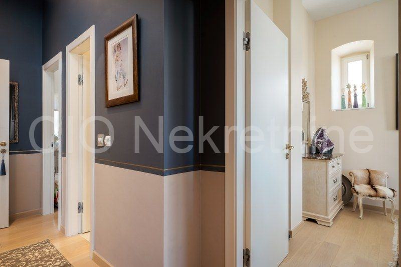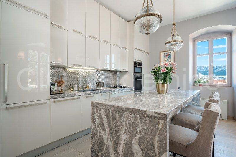 Split – Marjan | Luxury three-bedroom apartment for saleIn one of the most desirable locations in Split, at the foot of Marjan, an exclusive three-bedroom apartment is for sale located in a completely renovated building, in which only top-quality and luxurious materials were used.The apartment, with a total area of 116 m², consists of a representative entrance area, a spacious living room connected to the kitchen and dining room, and a separate sleeping area. The sleeping area includes three comfortable bedrooms, one of which is decorated as a wardrobe, while the remaining two are equipped with built-in wardrobes and the highest quality beds and mattresses.There are two bathrooms available - one bathroom and an additional space that currently includes a bathroom and a boiler room, with the possibility of easy conversion into a second bathroom.The kitchen leads to a terrace with an open view of the city and the surrounding area, while the ceiling height of over 3.7 m further emphasizes the feeling of elegance, airiness and luxury.In the immediate vicinity of the apartment entrance there is an elevator with direct access to the storage room and garage, and the apartment also has one garage parking space. The property is being sold fully furnished, except for personal belongings and artwork.The building's tenants have access to a shared swimming pool, intended exclusively for the use of co-owners (a total of seven apartments in the building).The prime location, exceptional level of equipment, security and privacy make this property one of the most attractive in Split.More information and a viewing of the property with an agent is possible only with a signed Agency Agreement that is in accordance with the Data Protection Act and the Real Estate Agency Act.Agency fee: 2% + VAT