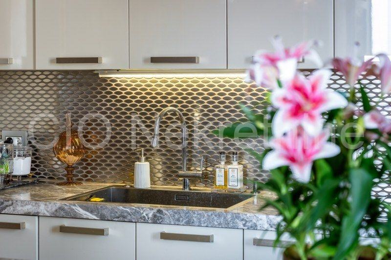 Iz kuhinje se izlazi na terasu s otvorenim pogledom na grad i okolicu, dok visina stropova od preko 3,7 m dodatno naglašava osjećaj elegancije, prozračnosti i luksuza.
