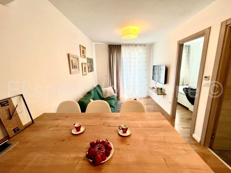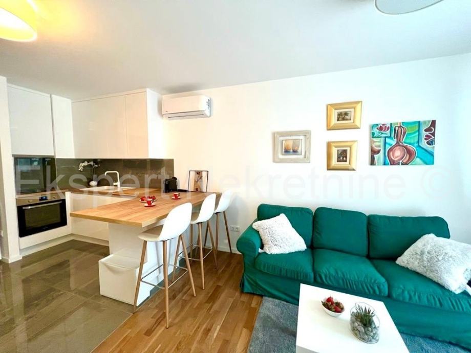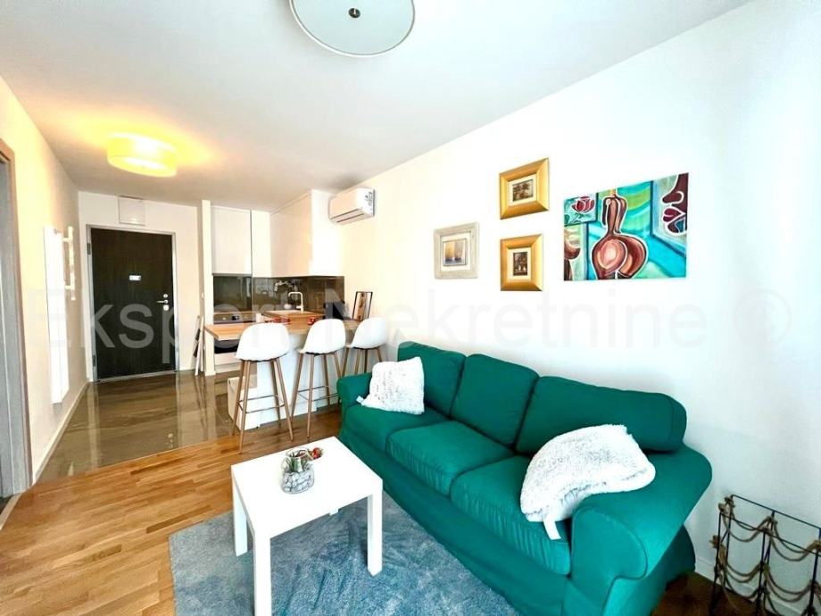 Stan ima spavaću sobu,kupaonu,dnevni boravak s kuhinjom i blagovanom te balkon 5m2.