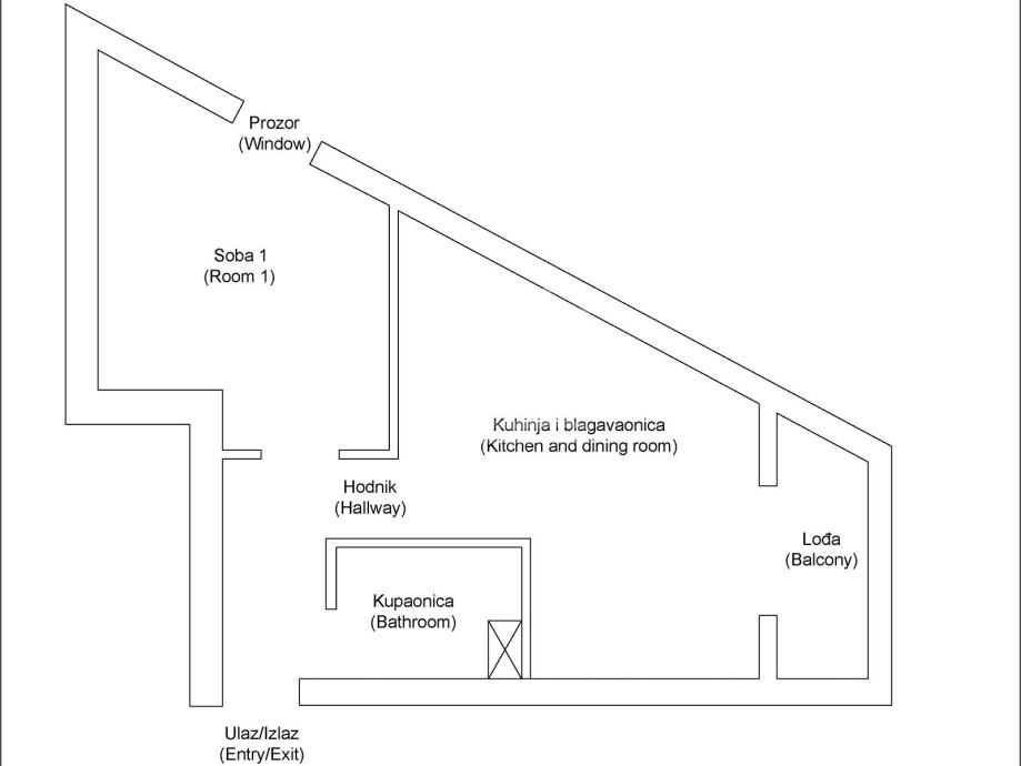 Split, naselje Mejaši, ulica 141. Brigade Hrvatske vojske - zgrada se sastoji od podzemne garaže, prizemlja i 5 katova, te je građena 2009.g. Stan koji se prodaje se nalazi na 1. katu, te se sastoji od hodnika, spavaće sobe, kuhinje sa blagovaonicom i dnevnim boravkom, te kupaonice, ukupne stambene površine 32,93m2, te lođe od 2,79m2 (obračunski 2,09m2). Ukupna prodajna površina je 35,02m2.