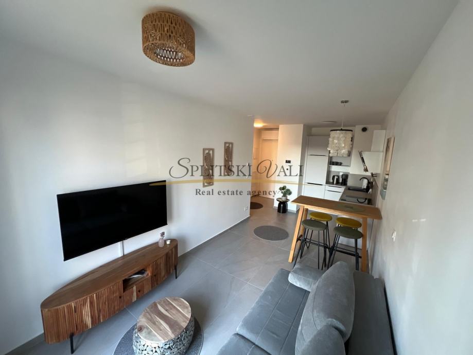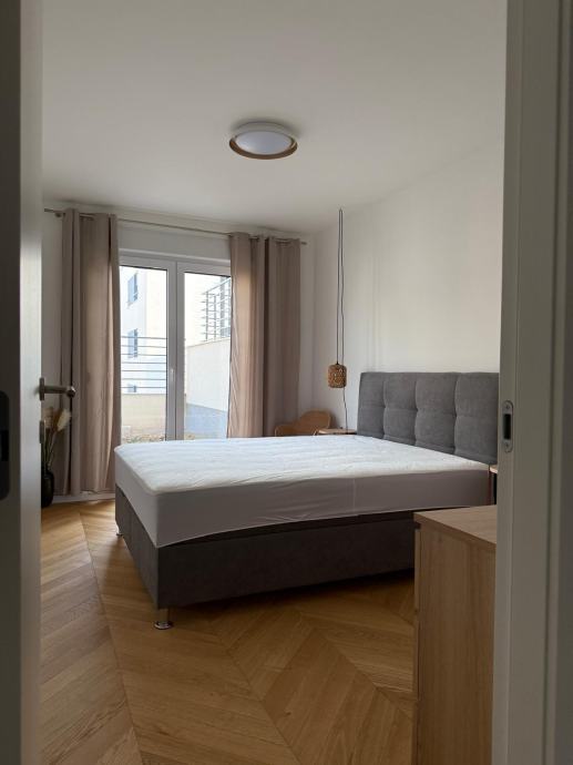 Posredujemo u najmu moderno uređenog i potpuno novonamještenog jednosobnog stana u novogradnji, površine 37 m². Stan se sastoji od: